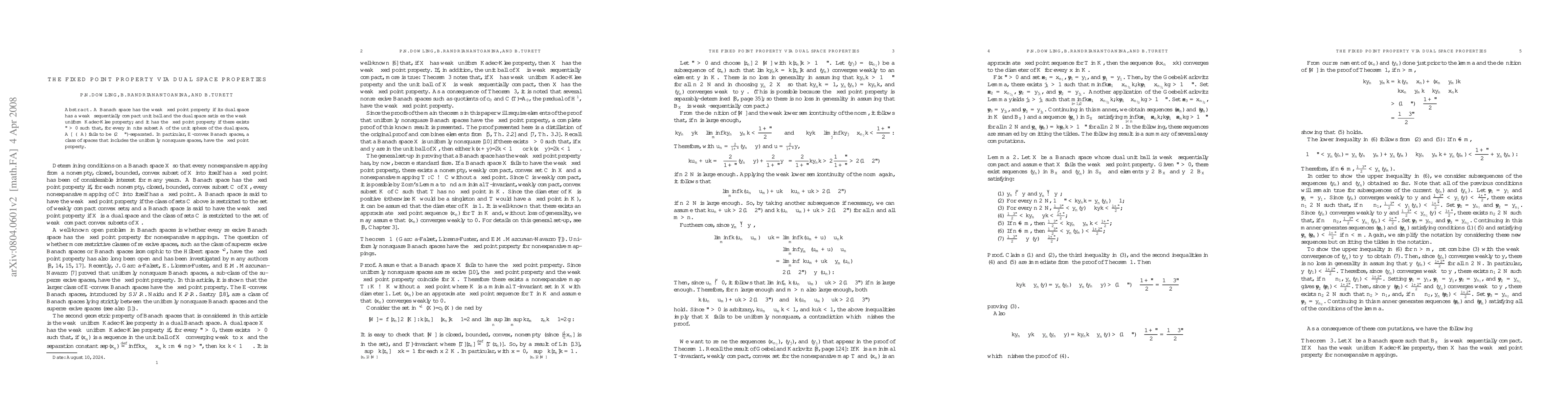 A Banach space has the weak fixed point property if its dual space has a weak$^*$ sequentially compact unit ball and the dual space satisfies the weak$^*$ uniform Kadec-Klee property; and it has the \fpp if there exists $\epsilon>0$ such that, for every infinite subset $A$ of the unit sphere of the dual space, $A\cup (-A)$ fails to be $(2-\epsilon)$-separated. In particular, $E$-convex Banach spaces, a class of spaces that includes the uniformly nonsquare spaces, have the fixed point property.