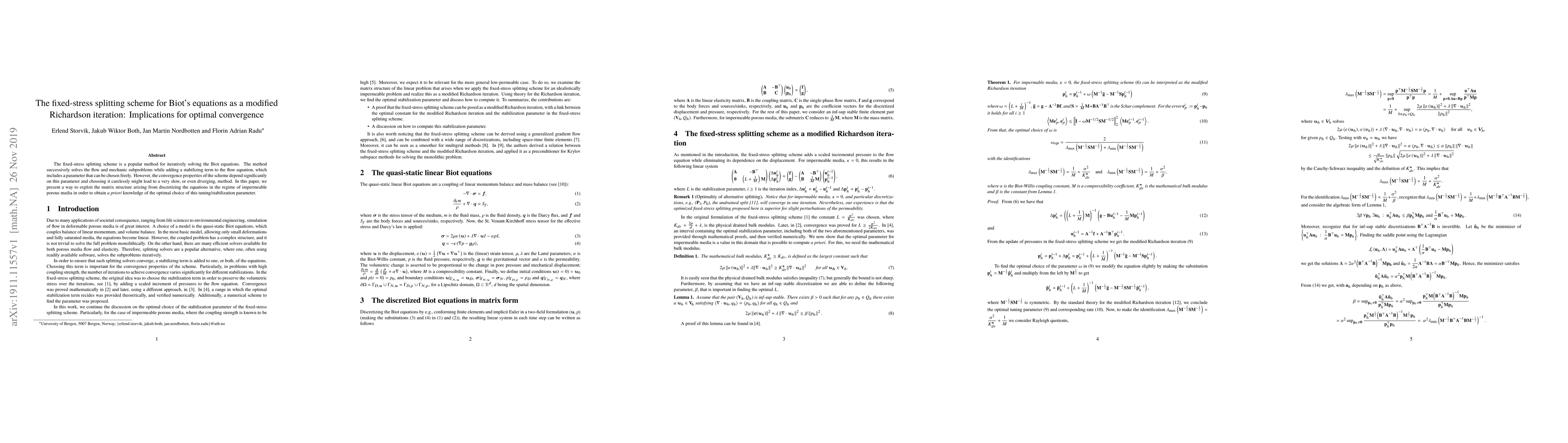 The fixed-stress splitting scheme is a popular method for iteratively solving the Biot equations. The method successively solves the flow and mechanic subproblems while adding a stabilizing term to the flow equation, which includes a parameter that can be chosen freely. However, the convergence properties of the scheme depend significantly on this parameter and choosing it carelessly might lead to a very slow, or even diverging, method. In this paper, we present a way to exploit the matrix structure arizing from discretizing the equations in the regime of impermeable porous media in order to obtain a priori knowledge of the optimal choice of this tuning/stabilization parameter.