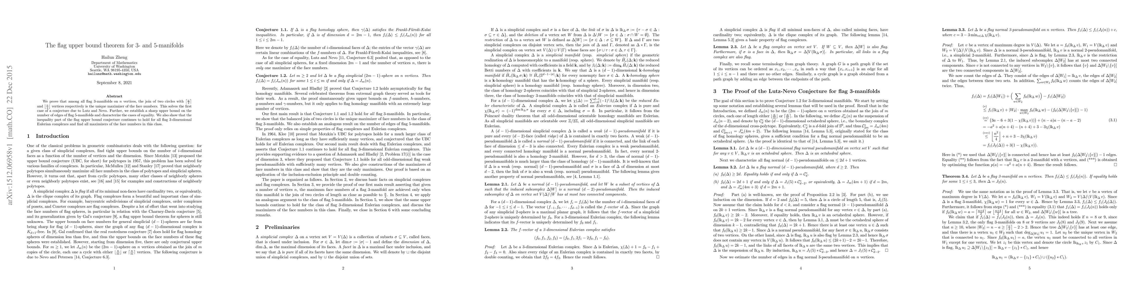 This paper proves that the join of two circles with $\left\lceil{\frac{n}{2}}\right \rceil$ and $\left\lfloor{\frac{n}{2}}\right \rfloor$ vertices maximizes face numbers in flag 3-manifolds, solving a conjecture by Lutz and Nevo. It also establishes an upper bound on edges in flag 5-manifolds and characterizes equality cases.