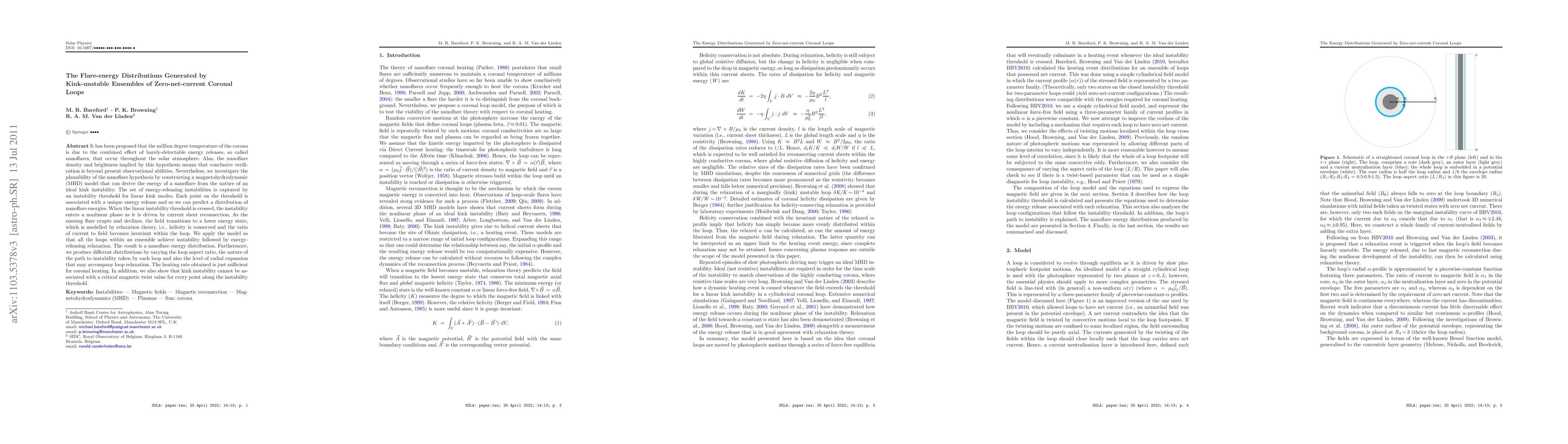 It has been proposed that the million degree temperature of the corona is due to the combined effect of barely-detectable energy releases, so called nanoflares, that occur throughout the solar atmosphere. Alas, the nanoflare density and brightness implied by this hypothesis means that conclusive verification is beyond present observational abilities. Nevertheless, we investigate the plausibility of the nanoflare hypothesis by constructing a magnetohydrodynamic (MHD) model that can derive the energy of a nanoflare from the nature of an ideal kink instability. The set of energy-releasing instabilities is captured by an instability threshold for linear kink modes. Each point on the threshold is associated with a unique energy release and so we can predict a distribution of nanoflare energies. When the linear instability threshold is crossed, the instability enters a nonlinear phase as it is driven by current sheet reconnection. As the ensuing flare erupts and declines, the field transitions to a lower energy state, which is modelled by relaxation theory, i.e., helicity is conserved and the ratio of current to field becomes invariant within the loop. We apply the model so that all the loops within an ensemble achieve instability followed by energy-releasing relaxation. The result is a nanoflare energy distribution. Furthermore, we produce different distributions by varying the loop aspect ratio, the nature of the path to instability taken by each loop and also the level of radial expansion that may accompany loop relaxation. The heating rate obtained is just sufficient for coronal heating. In addition, we also show that kink instability cannot be associated with a critical magnetic twist value for every point along the instability threshold.