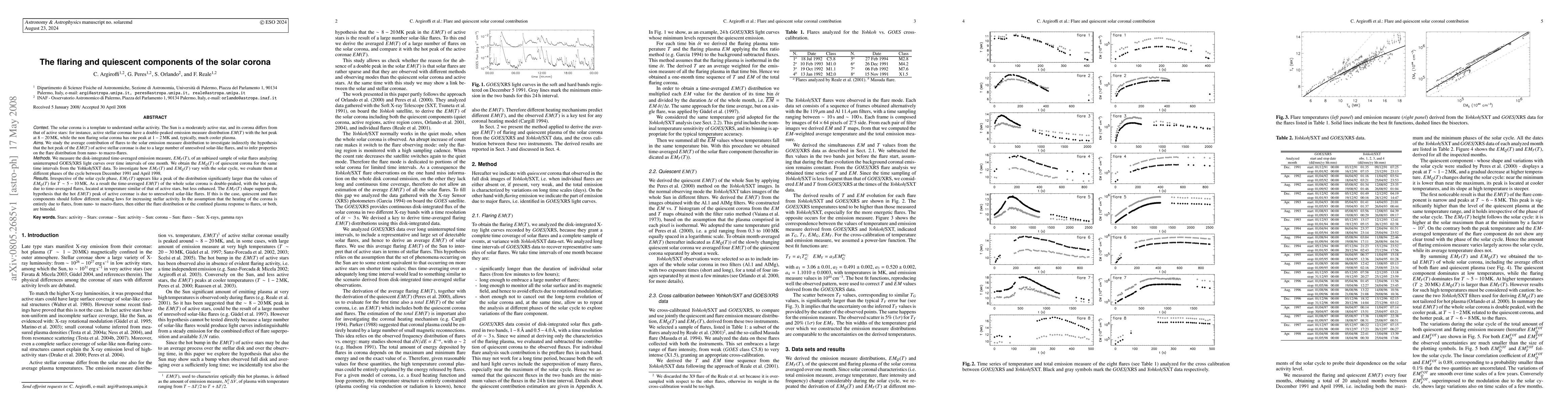 This paper investigates the solar corona's flaring and quiescent components, finding that the time-averaged emission measure of flares significantly contributes to the hot peak in the coronal emission measure, supporting the hypothesis that active stellar coronae's hot peak is due to numerous unresolved solar-like flares. The study suggests that quiescent and flare components may follow different scaling laws for stellar activity.
