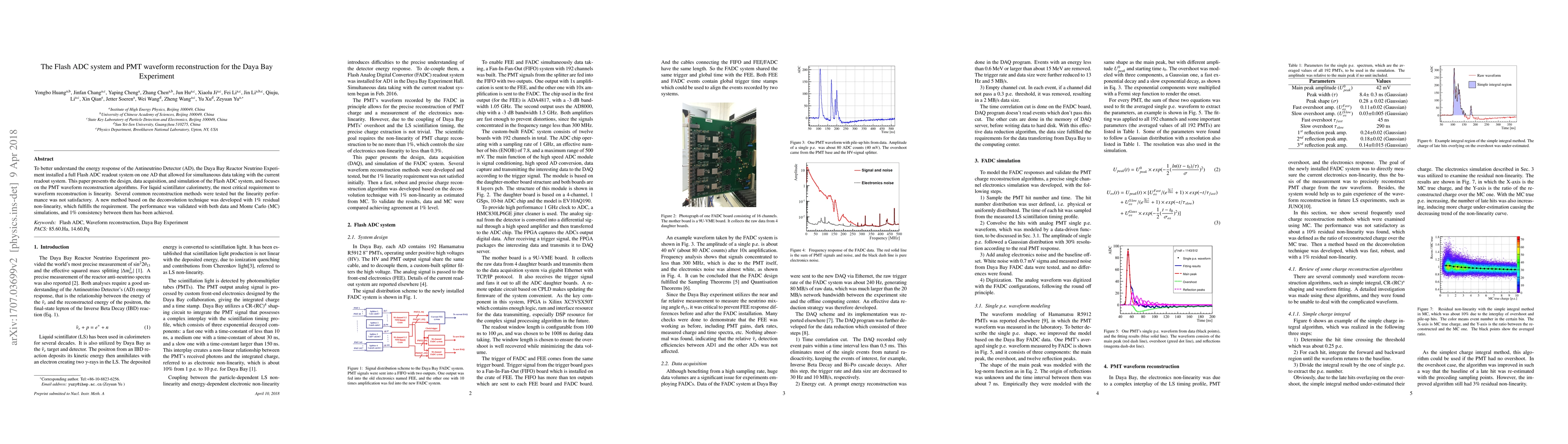 The Daya Bay Reactor Neutrino Experiment implemented a Flash ADC system for improved energy response in the Antineutrino Detector, focusing on PMT waveform reconstruction. A new deconvolution-based reconstruction method was developed to achieve 1% residual non-linearity, validated through data and Monte Carlo simulations with 1% consistency.