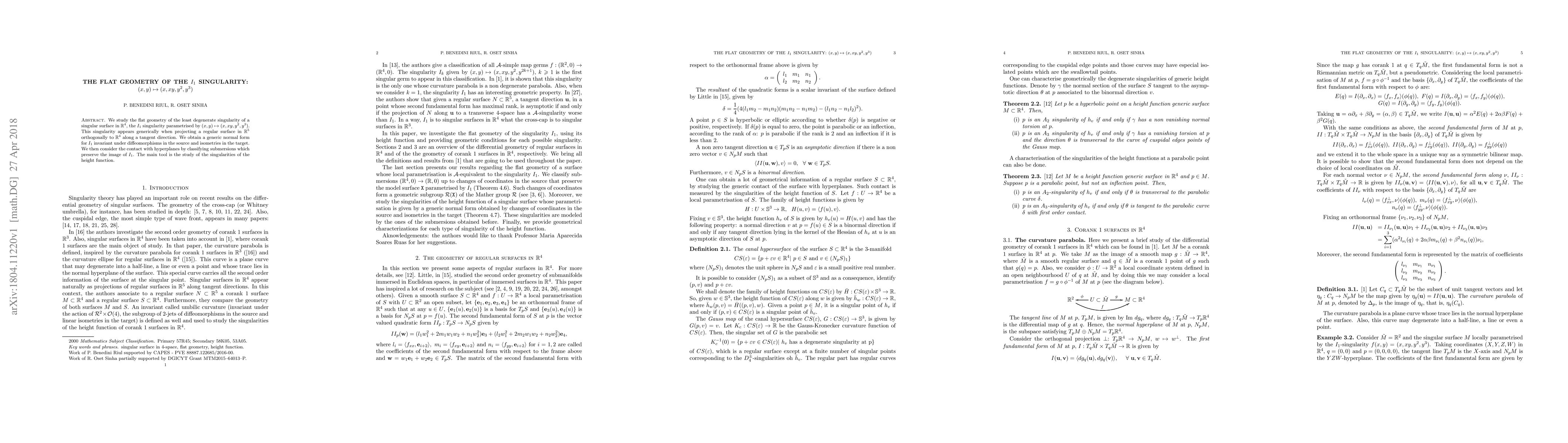 This paper investigates the flat geometry of the $I_1$ singularity in $\mathbb R^4$ given by $(x,y)\mapsto(x,xy,y^{2},y^{3})$, obtaining a generic normal form invariant under diffeomorphisms and isometries. It classifies submersions preserving the image of $I_1$ by studying the singularities of the height function.