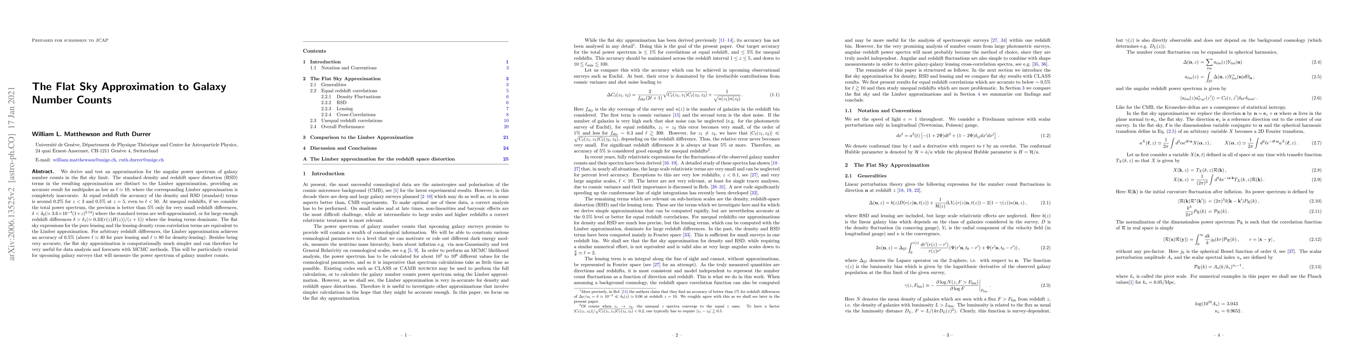 The paper presents a flat sky approximation for the angular power spectrum of galaxy number counts, which is more accurate than the Limber approximation, especially for low multipoles. It is computationally simpler and thus useful for upcoming galaxy surveys, achieving accuracies of around 0.2% for $z<3$ and 0.5% at $z=5$.