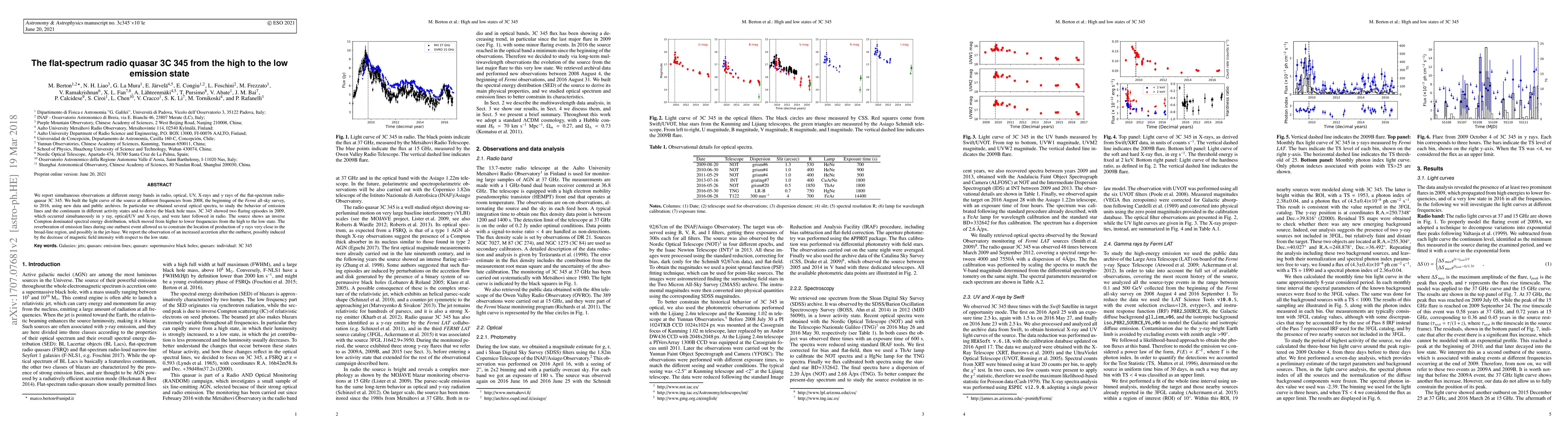 Researchers observed 3C 345 in multiple energy bands over a decade, finding two flaring episodes with simultaneous gamma-ray and optical/UV emissions that reversed to radio after the outburst, and suggesting a possible link between magnetic field intensity and accretion rates.