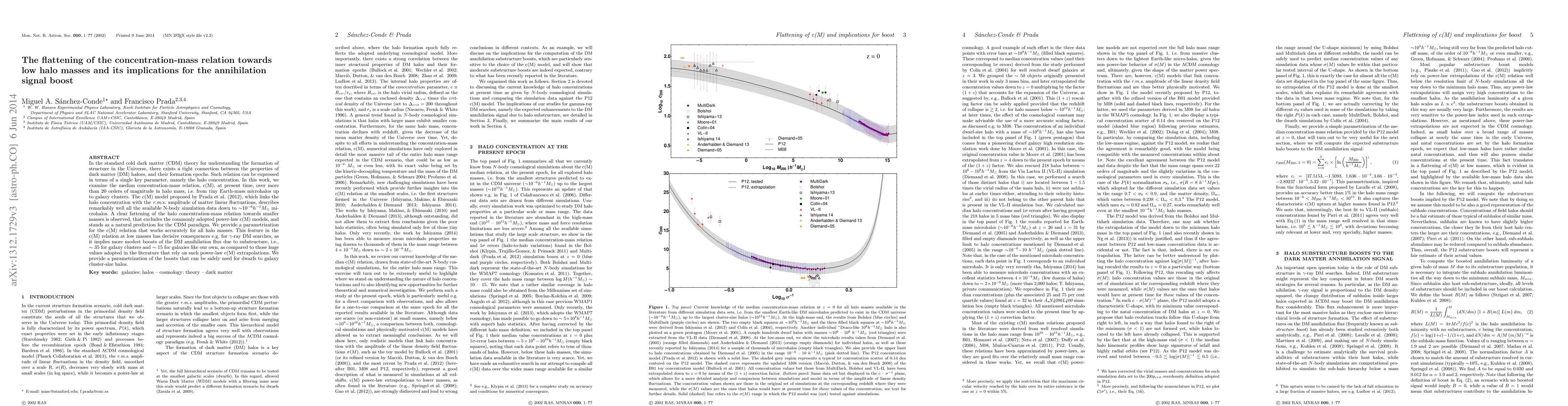 This paper examines the concentration-mass relation of dark matter haloes in the Cold Dark Matter (CDM) theory, finding a flattening towards low masses that contrasts with power-law models. This flattening leads to more modest boosts in the dark matter annihilation flux, significantly impacting gamma-ray searches for dark matter.