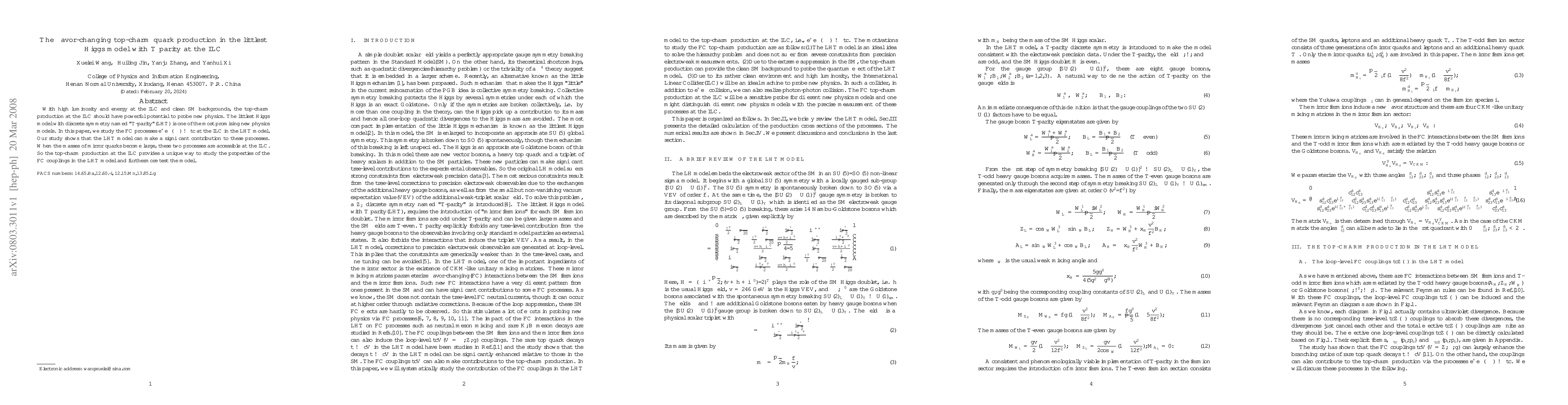 This paper investigates the flavor-changing top-charm production processes at the International Linear Collider (ILC) within the littlest Higgs model with T-parity (LHT). The study demonstrates that the LHT model significantly contributes to these processes, especially when mirror quark masses are large, offering a unique way to probe the model's flavor-changing couplings.