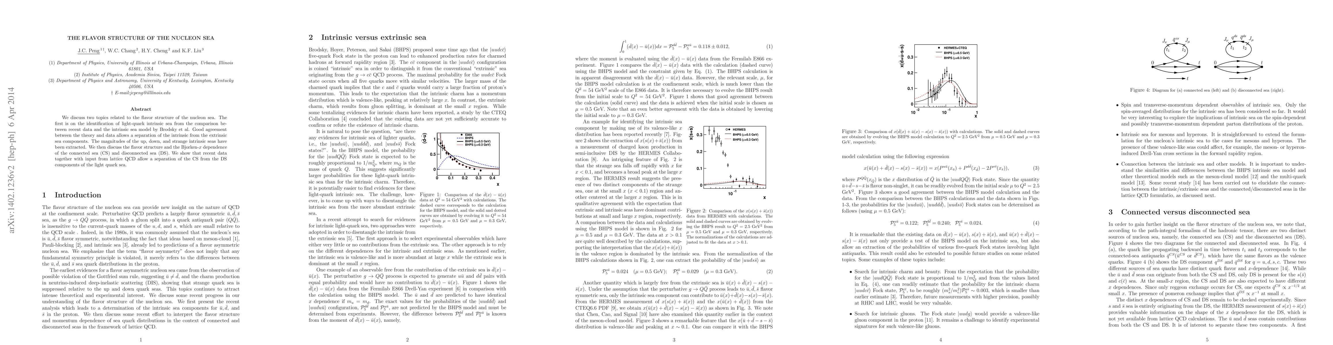 We discuss two topics related to the flavor structure of the nucleon sea. The first is on the identification of light-quark intrinsic sea from the comparison between recent data and the intrinsic sea model by Brodsky et al. Good agreement between the theory and data allows a separation of the intrinsic from the extrinsic sea components. The magnitudes of the up, down, and strange intrinsic seas have been extracted. We then discuss the flavor structure and the Bjorken-x dependence of the connected sea (CS) and disconnected sea (DS). We show that recent data together with input from lattice QCD allow a separation of the CS from the DS components of the light quark sea.