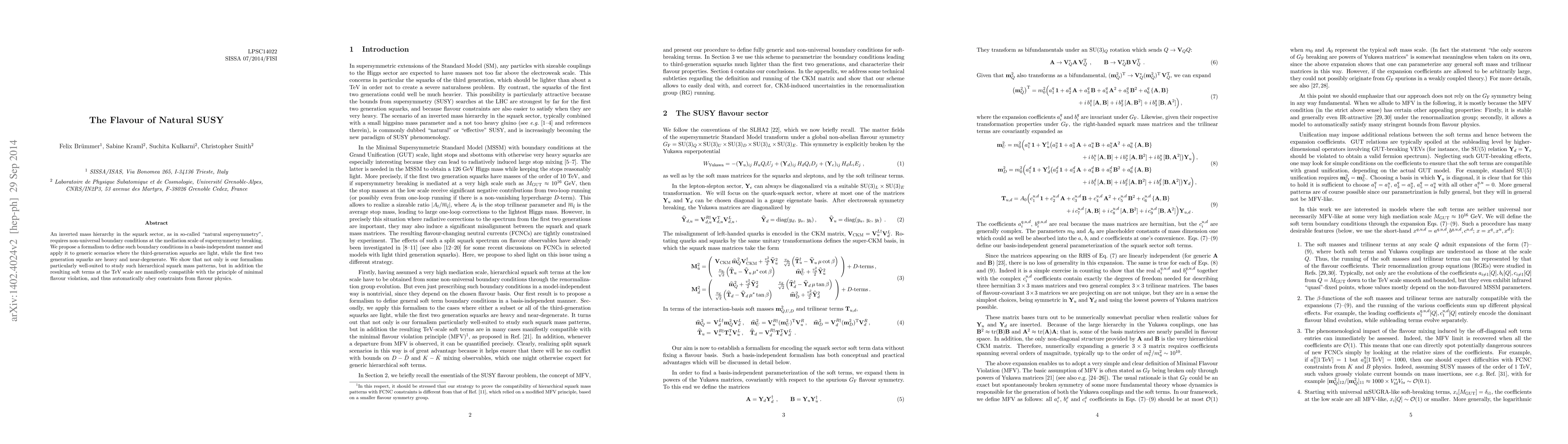 An inverted mass hierarchy in the squark sector, as in so-called "natural supersymmetry", requires non-universal boundary conditions at the mediation scale of supersymmetry breaking. We propose a formalism to define such boundary conditions in a basis-independent manner and apply it to generic scenarios where the third-generation squarks are light, while the first two generation squarks are heavy and near-degenerate. We show that not only is our formalism particularly well-suited to study such hierarchical squark mass patterns, but in addition the resulting soft terms at the TeV scale are manifestly compatible with the principle of minimal flavour violation, and thus automatically obey constraints from flavour physics.
