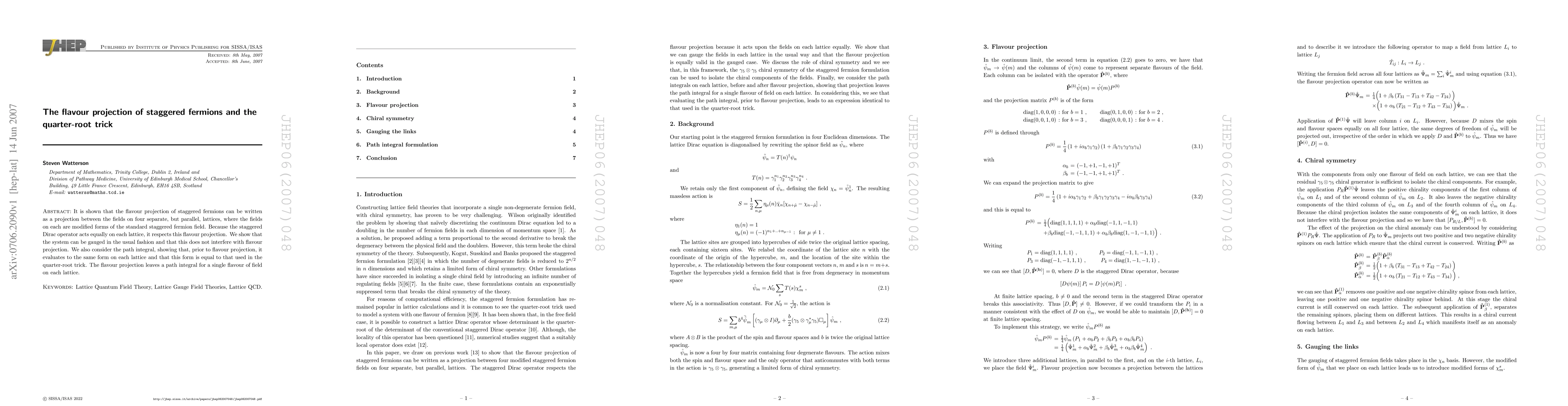 This paper demonstrates that flavour projection in staggered fermions can be achieved by projecting fields across four parallel lattices, each modified from the standard staggered fermion field. The staggered Dirac operator maintains this projection, allowing for standard gauge operations. The path integral evaluates identically on each lattice before projection, aligning with the quarter-root trick, resulting in a simplified path integral for each projected flavour.