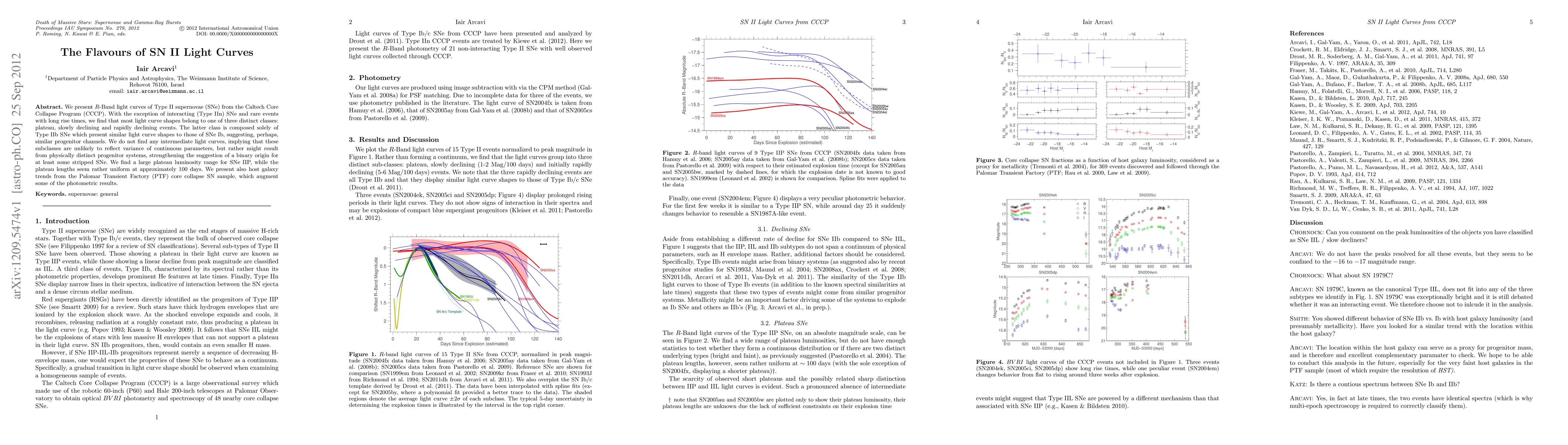 We present R-Band light curves of Type II supernovae (SNe) from the Caltech Core Collapse Program (CCCP). With the exception of interacting (Type IIn) SNe and rare events with long rise times, we find that most light curve shapes belong to one of three distinct classes: plateau, slowly declining and rapidly declining events. The latter class is composed solely of Type IIb SNe which present similar light curve shapes to those of SNe Ib, suggesting, perhaps, similar progenitor channels. We do not find any intermediate light curves, implying that these subclasses are unlikely to reflect variance of continuous parameters, but rather might result from physically distinct progenitor systems, strengthening the suggestion of a binary origin for at least some stripped SNe. We find a large plateau luminosity range for SNe IIP, while the plateau lengths seem rather uniform at approximately 100 days. We present also host galaxy trends from the Palomar Transient Factory (PTF) core collapse SN sample, which augment some of the photometric results.