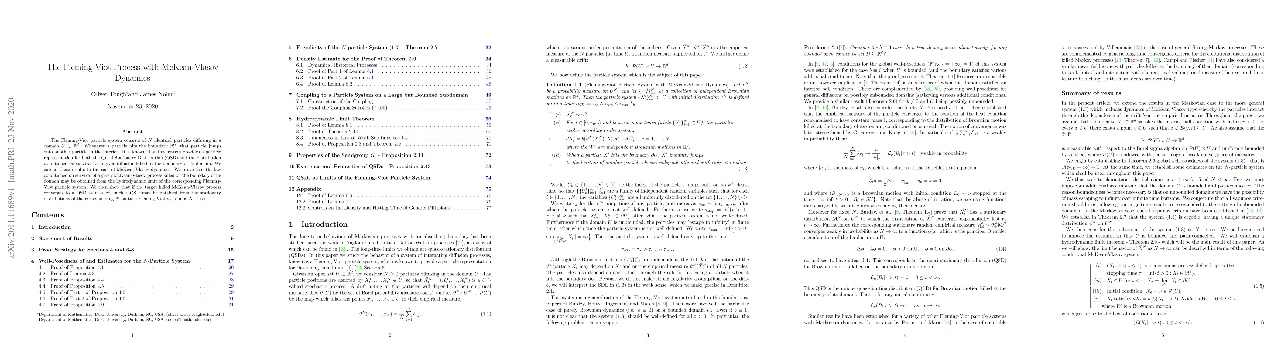 This paper extends the Fleming-Viot particle system to McKean-Vlasov dynamics, showing that the conditioned survival distribution of a killed McKean-Vlasov process on its domain boundary can be derived from the hydrodynamic limit of the corresponding Fleming-Viot system. It also proves that the Quasi-Stationary Distribution of the target process converges to the stationary distributions of the Fleming-Viot system as particle number $N$ approaches infinity.