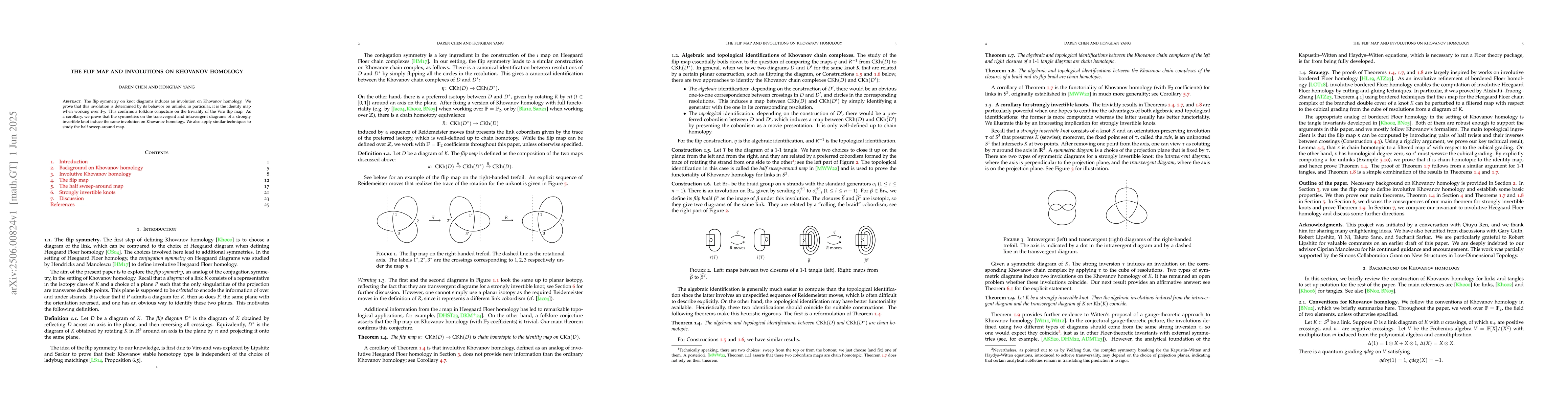 The paper presents a proof that the flip involution on Khovanov homology is determined by its behavior on unlinks, confirming the Viro flip map's triviality over $\mathbb{F}_2$.