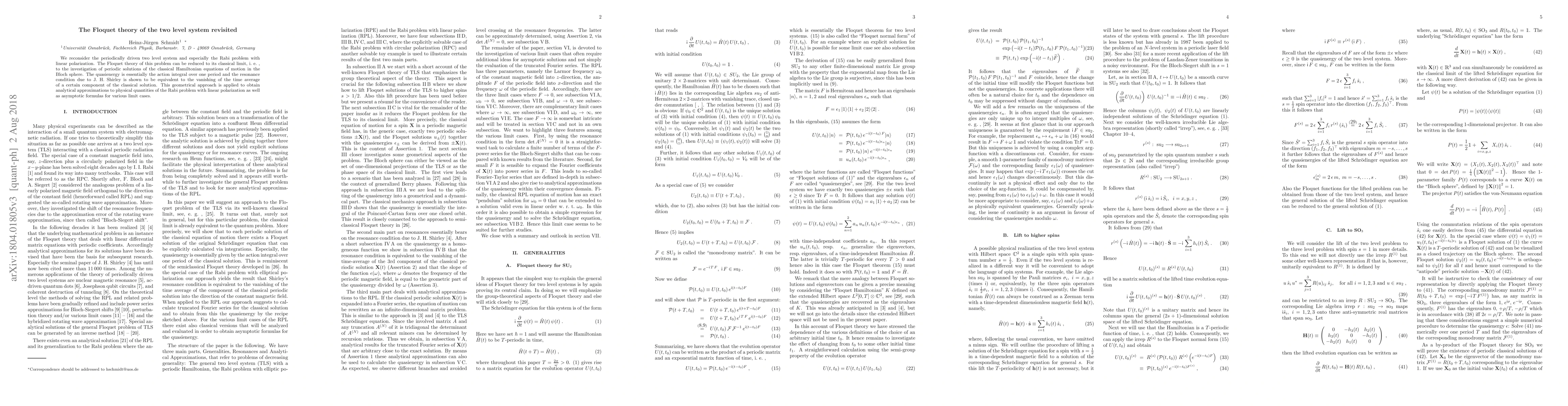 This paper revisits the Floquet theory of a two-level system with linear polarization, reducing it to classical Hamiltonian equations. It establishes an equivalence between Shirley's resonance condition and the time average of a classical solution component, offering analytical approximations and asymptotic formulas for various cases.