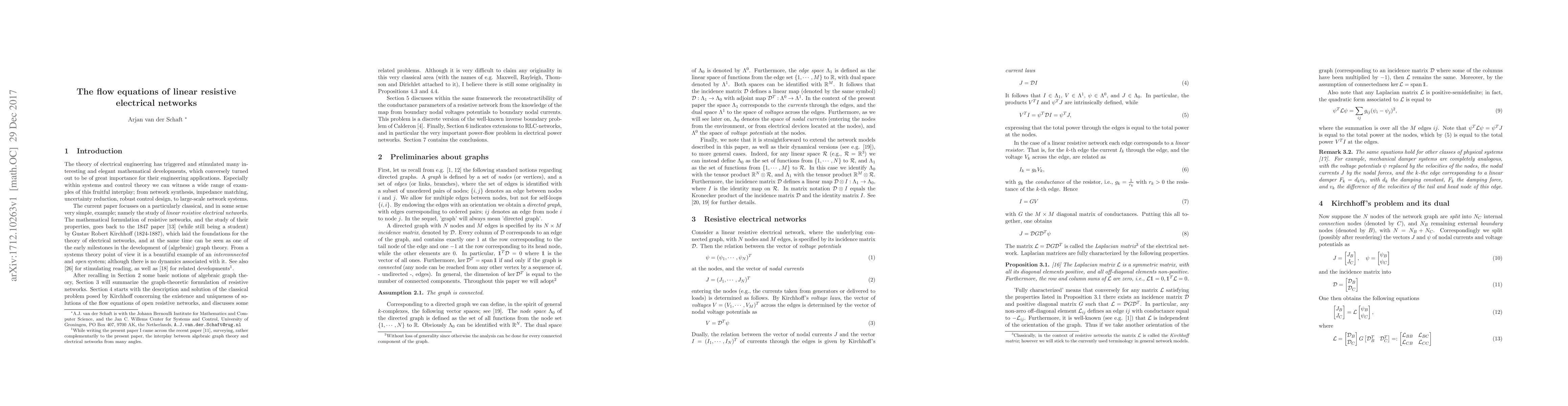 Resistive electrical networks constitute a beautiful example of open, interconnected, large-scale systems, giving rise to an elegant classical mathematical theory, still posing open problems and suggesting important extensions.