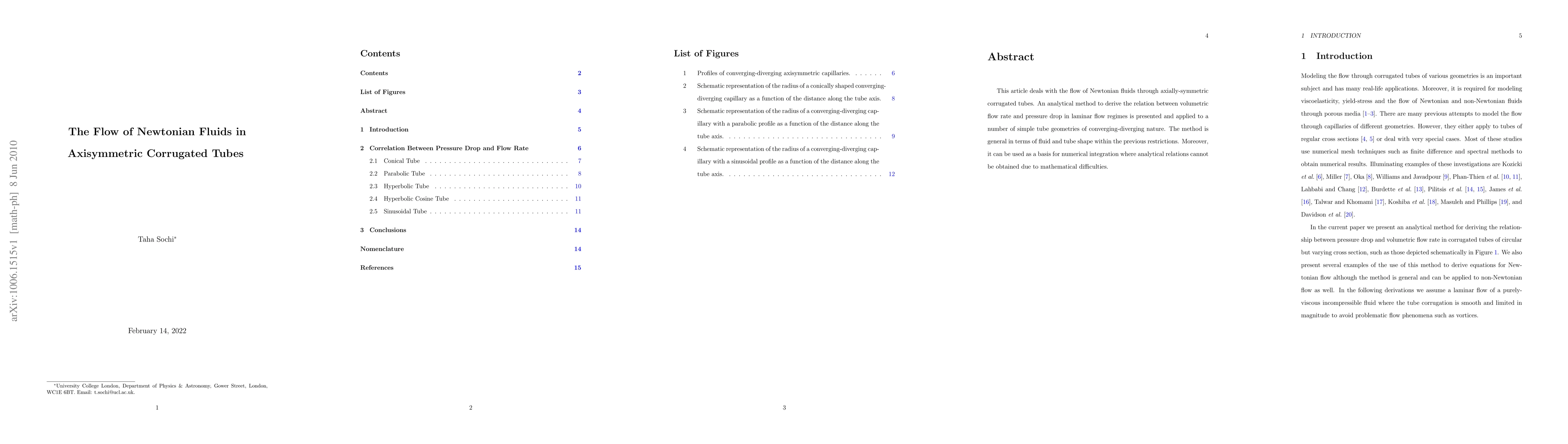 The development of a new analytical method for deriving mathematical relations between pressure drop and volumetric flow rate in axially symmetric corrugated tubes.