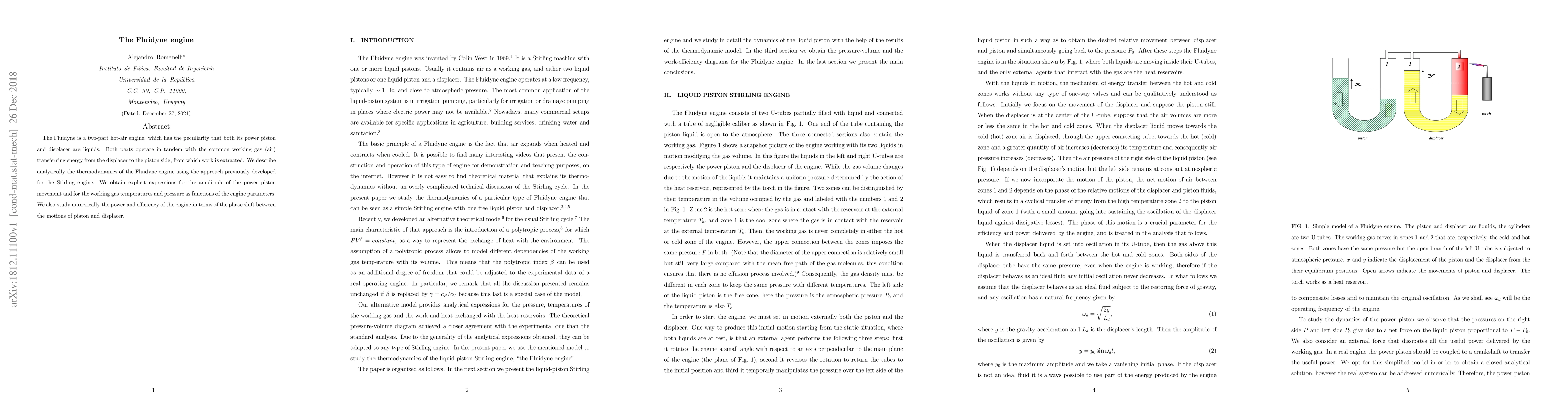 The Fluidyne is a two-part hot-air engine, which has the peculiarity that both its power piston and displacer are liquids. Both parts operate in tandem with the common working gas (air) transferring energy from the displacer to the piston side, from which work is extracted. We describe analytically the thermodynamics of the Fluidyne engine using the approach previously developed for the Stirling engine. We obtain explicit expressions for the amplitude of the power piston movement and for the working gas temperatures and pressure as functions of the engine parameters. We also study numerically the power and efficiency of the engine in terms of the phase shift between the motions of piston and displacer.