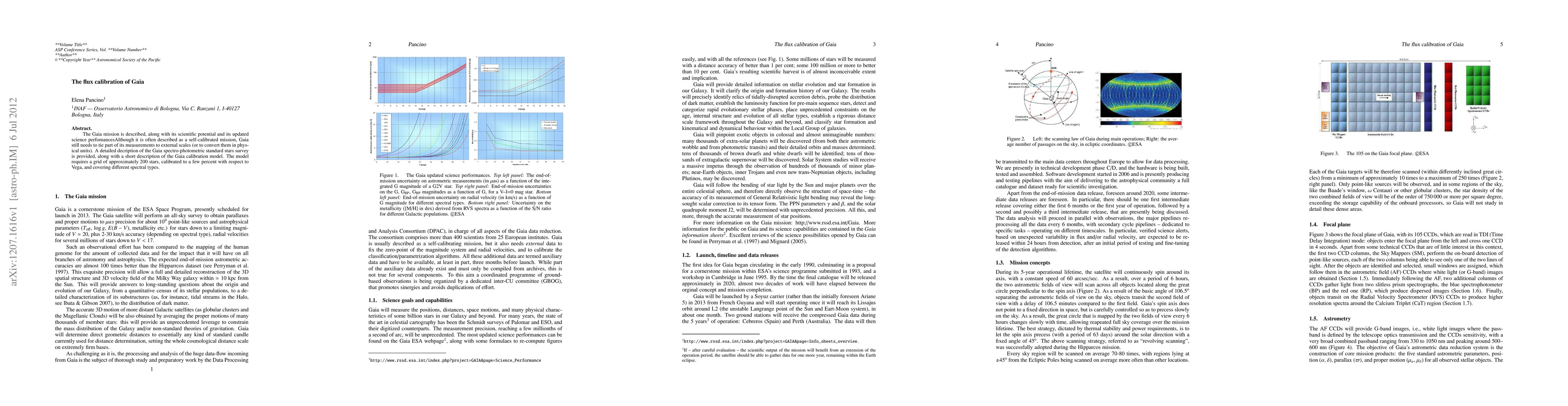 The Gaia mission is described, along with its scientific potential and its updated science perfomances. Although it is often described as a self-calibrated mission, Gaia still needs to tie part of its measurements to external scales (or to convert them in physical units). A detailed decription of the Gaia spectrophotometric standard stars survey is provided, along with a short description of the Gaia calibration model. The model requires a grid of approximately 200 stars, calibrated to a few percent with respect to Vega, and covering different spectral types.