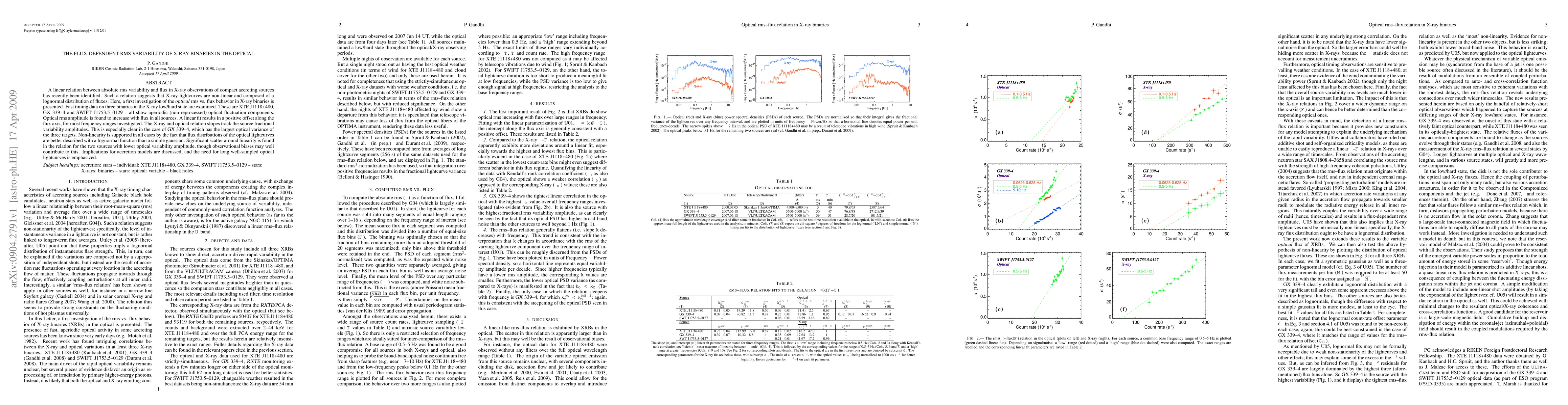 This study investigates the relationship between optical rms variability and flux in X-ray binaries, finding a linear correlation that supports non-linear X-ray lightcurves composed of lognormal flux distributions. The optical rms amplitude increases with flux, with notable scatter in sources with lower optical variability, suggesting observational biases.