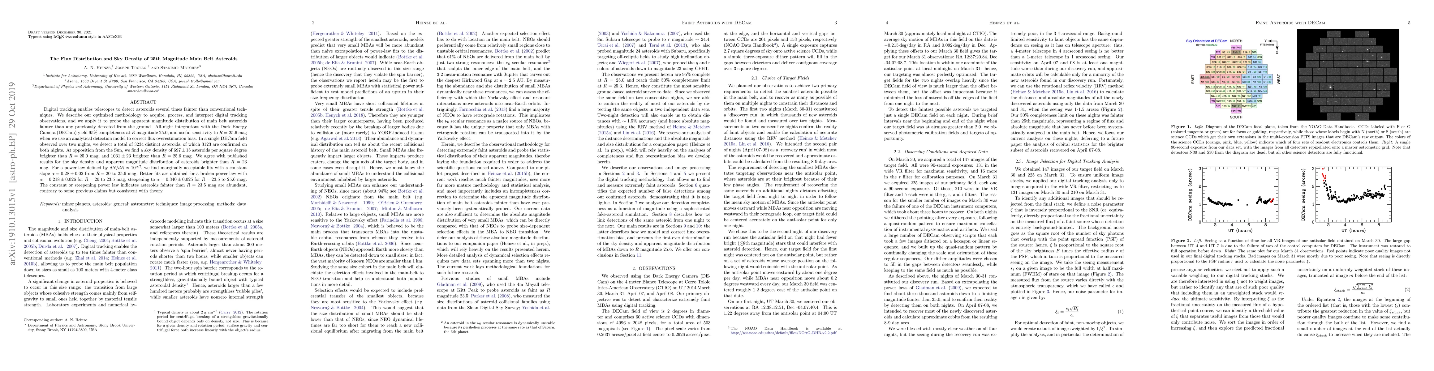 This study utilizes digital tracking with the Dark Energy Camera to detect faint main belt asteroids, achieving 95% completeness at $R=25.0$ mag. It finds a sky density of 697 ± 15 asteroids per square degree for $R<25.0$ mag, supporting the theory that asteroids fainter than $R=23.5$ mag are abundant.