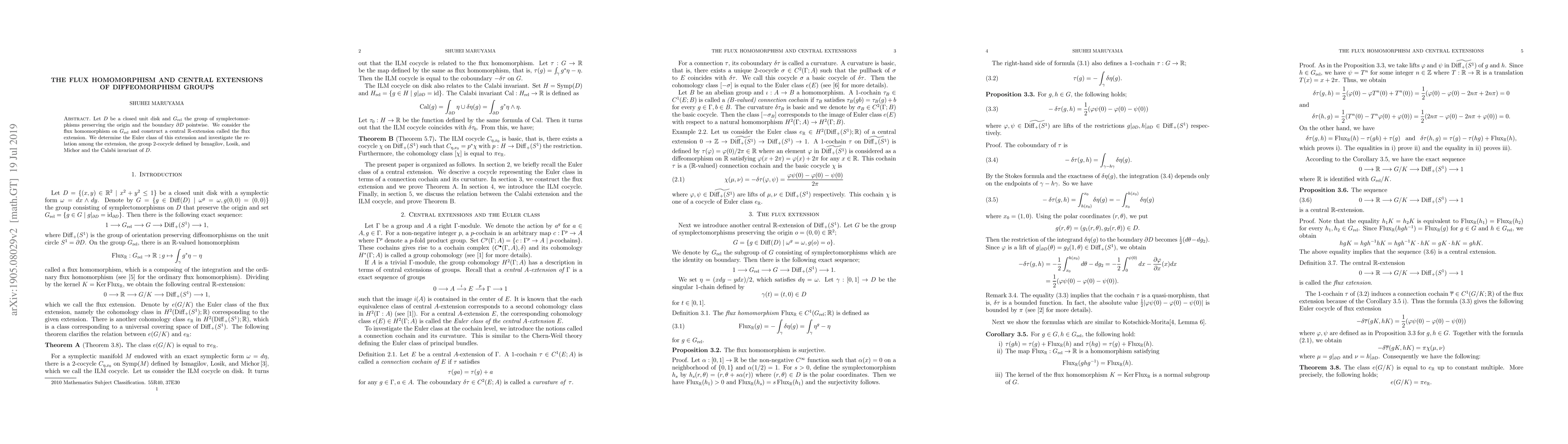 Researchers studied the relationship between a group of symplectomorphisms and a central extension, determining its Euler class and exploring implications for Calabi's invariant of a 2-dimensional disk.