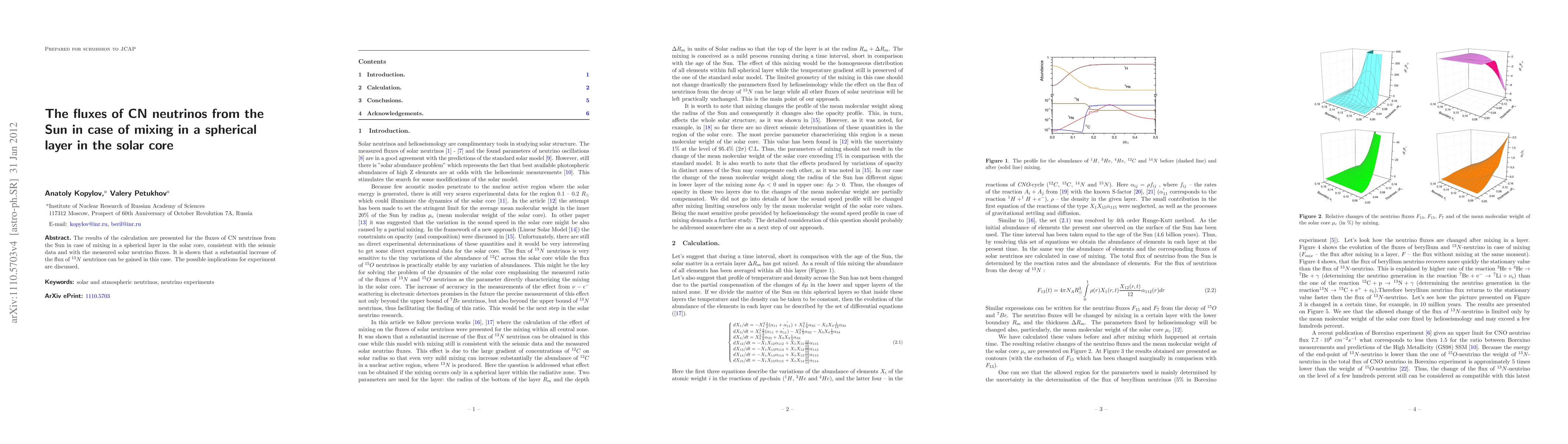 The results of the calculation are presented for the fluxes of CN neutrinos from the Sun in case of mixing in a spherical layer in the solar core, consistent with the seismic data and with the measured solar neutrino fluxes. It is shown that a substantial increase of the flux of $^{13}N$ neutrinos can be gained in this case. The possible implications for experiment are discussed.
