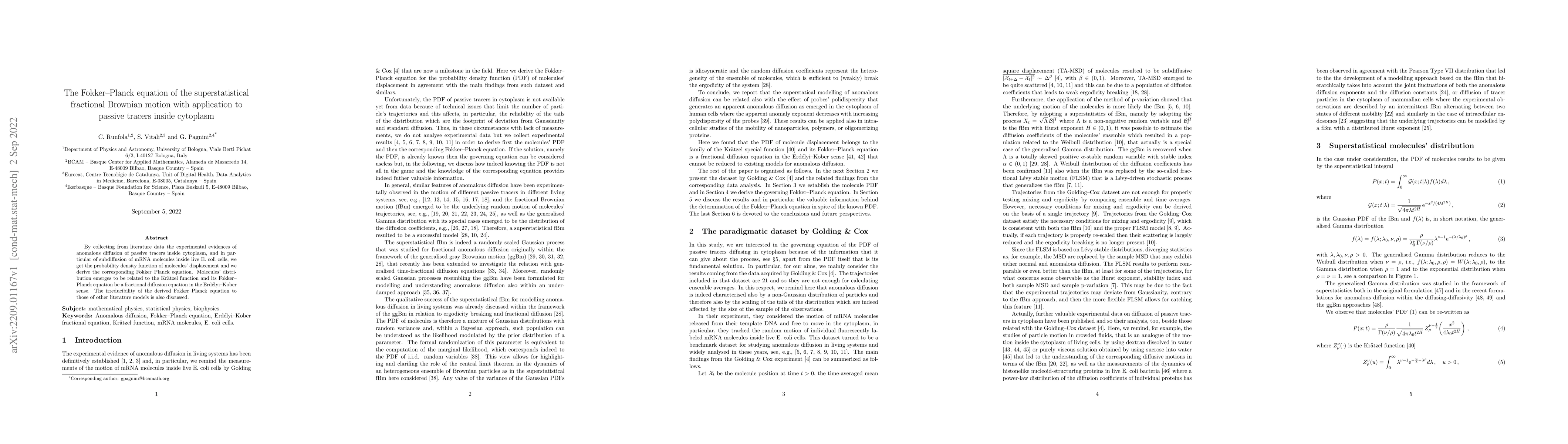 By collecting from literature data the experimental evidences of anomalous diffusion of passive tracers inside cytoplasm, and in particular of subdiffusion of mRNA molecules inside live E. coli cells, we get the probability density function of molecules' displacement and we derive the corresponding Fokker-Planck equation. Molecules' distribution emerges to be related to the Kr\"atzel function and its Fokker-Planck equation be a fractional diffusion equation in the Erd\'elyi-Kober sense. The irreducibility of the derived Fokker-Planck equation to those of other literature models is also discussed.