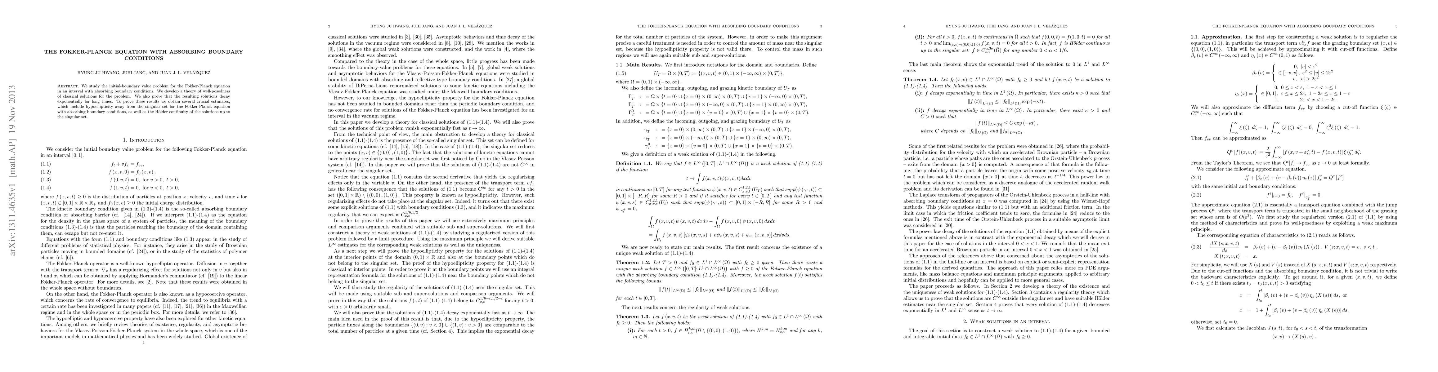 This paper develops a theory for the well-posedness of classical solutions to the Fokker-Planck equation with absorbing boundary conditions, proving exponential decay of solutions over time and establishing crucial estimates including hypoellipticity and Hölder continuity.
