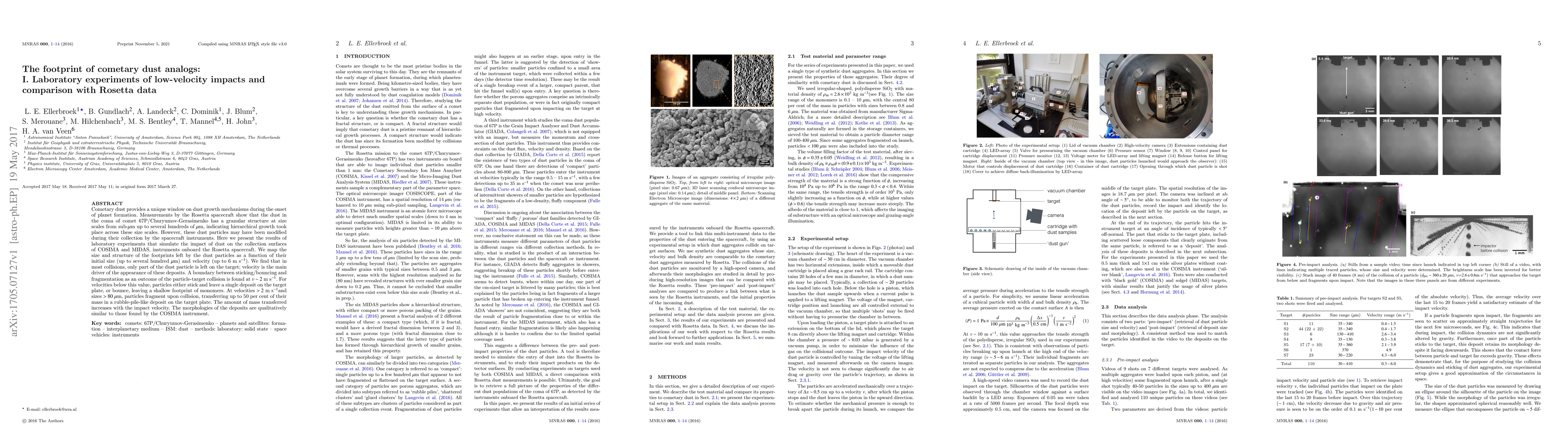 This paper reports on laboratory experiments simulating cometary dust impacts on spacecraft instruments, revealing that dust particles either stick, bounce, or fragment based on their velocity and size, with a critical velocity of ~2 m/s determining the outcome. The results help interpret Rosetta data by showing how dust collection may have been affected by instrument interactions.
