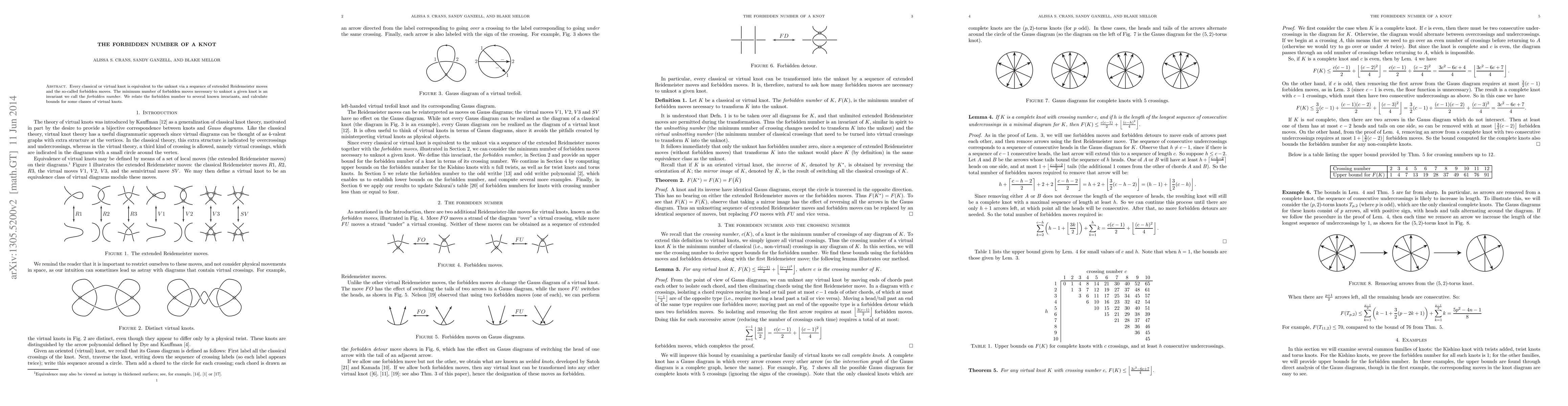 Summary: This paper introduces the concept of the "forbidden number" of a knot, defined as the minimum number of special "forbidden moves" required to transform a given knot into the unknot. The authors explore relationships between this invariant and other known knot invariants and provide bounds for certain classes of virtual knots.