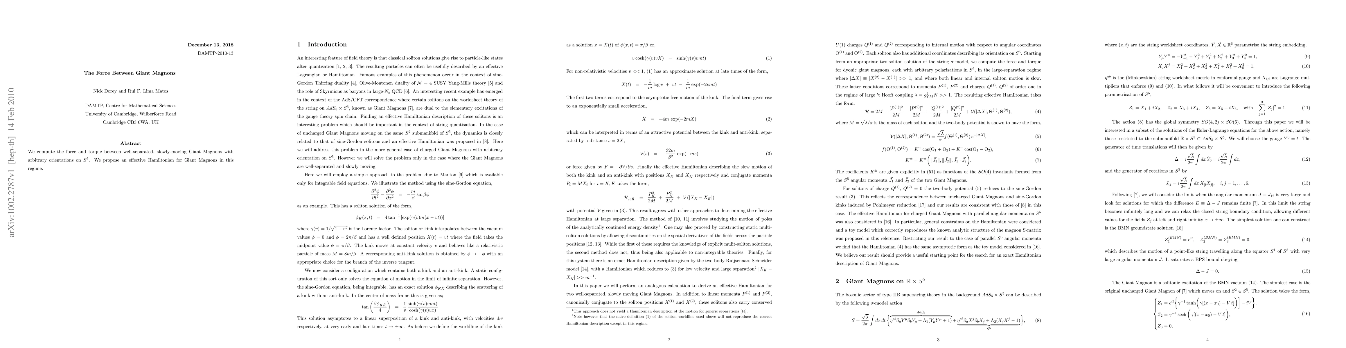 We compute the force and torque between well-separated, slowly-moving Giant Magnons with arbitrary orientations on S^5. We propose an effective Hamiltonian for Giant Magnons in this regime.