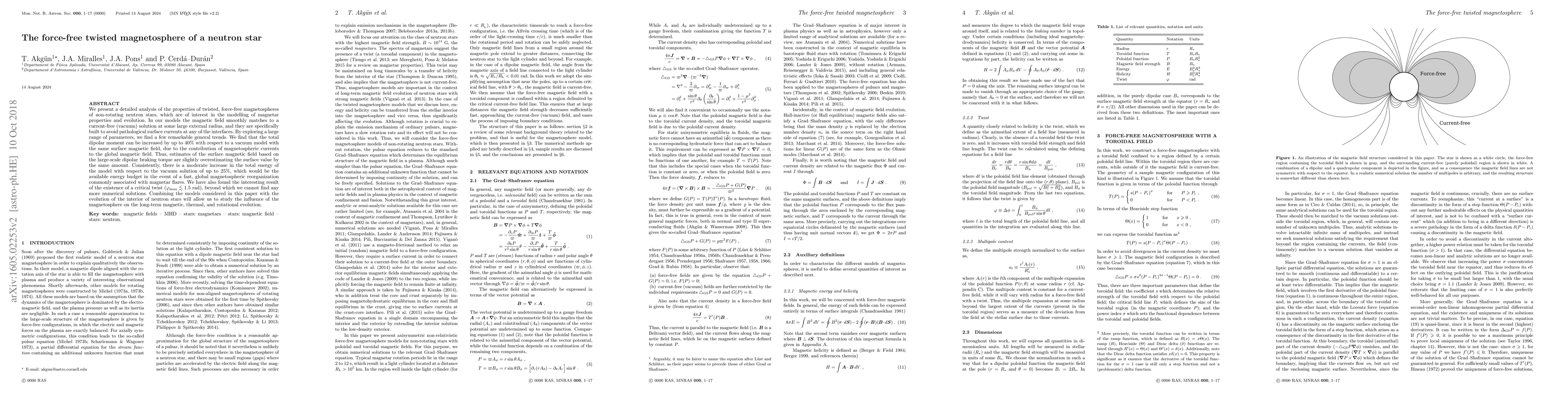 This paper analyzes twisted, force-free magnetospheres of non-rotating neutron stars, revealing that magnetospheric currents can increase the dipolar moment by up to 40% compared to vacuum models, leading to a 25% rise in total energy. It also identifies a critical twist beyond which numerical solutions are no longer possible.