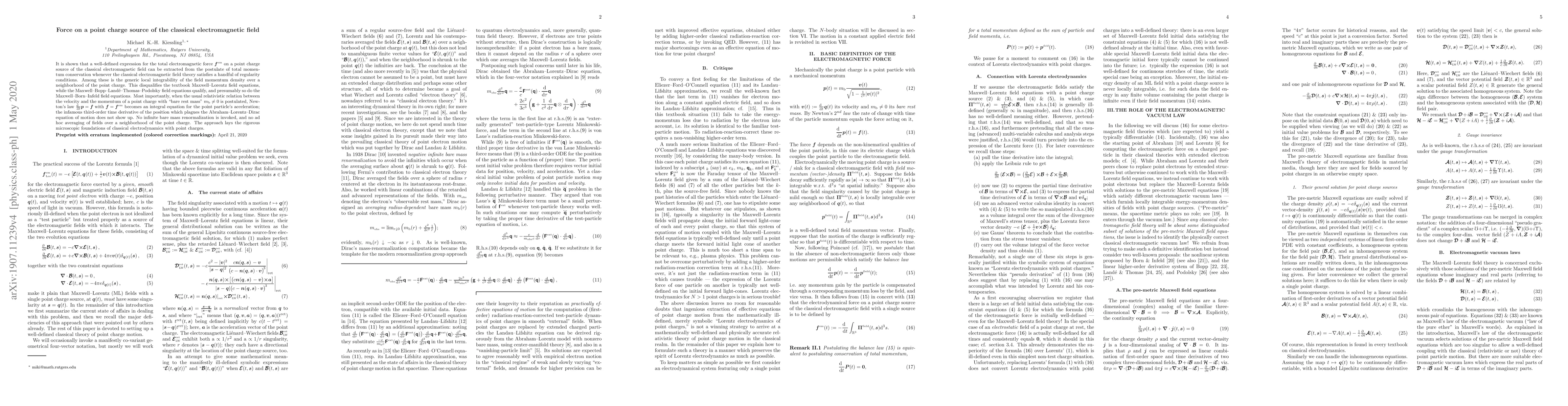 This paper derives a rigorous expression for the electromagnetic force on a point charge, showing that it can be obtained from momentum conservation principles under certain regularity conditions. It finds that the Maxwell-Bopp-Lande-Thomas-Podolsky equations, rather than the traditional Maxwell-Lorentz equations, provide a suitable framework, leading to a well-defined integral equation for particle acceleration without the need for infinite mass renormalization or ad hoc averaging.