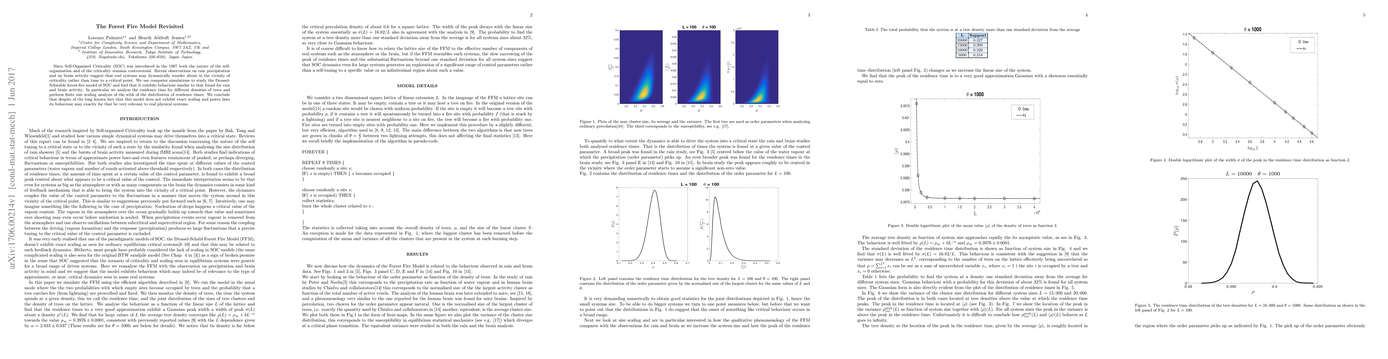 Since Self-Organised Criticality (SOC) was introduced in the 1987 both the nature of the self-organisation and of the criticality remains controversial. Recent observations on rain precipitation and on brain activity suggest that real systems may dynamically wander about in the vicinity of criticality rather than tune to a critical point. We use computer simulations to study the Drossel-Schwable forest-fire model of SOC and find that it exhibits behaviour similar to that found for rain and brain activity. In particular we analyse the residence time for different densities of trees and perform finite size scaling analysis of the with of the distribution of residence times. We conclude that despite of the long known fact that this model does not exhibit exact scaling and power laws its behaviour may exactly for that be very relevant to real physical systems.