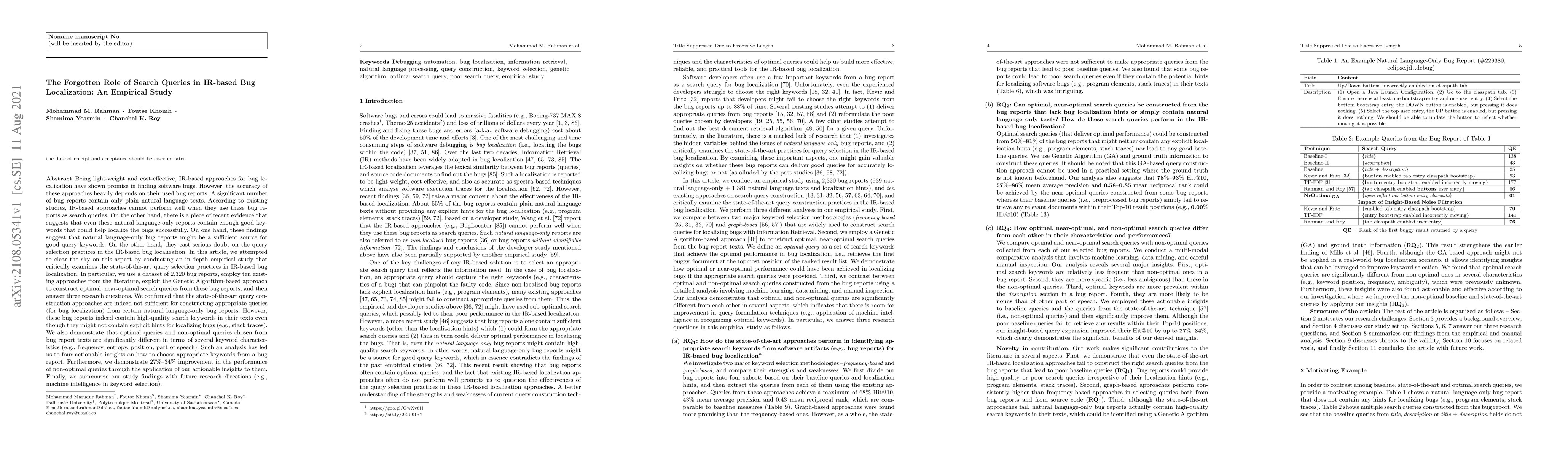 This paper investigates the effectiveness of IR-based bug localization using natural language bug reports as search queries. It finds that current query selection practices are insufficient, leading to a 27%-34% performance improvement when applying actionable insights derived from optimal query characteristics.