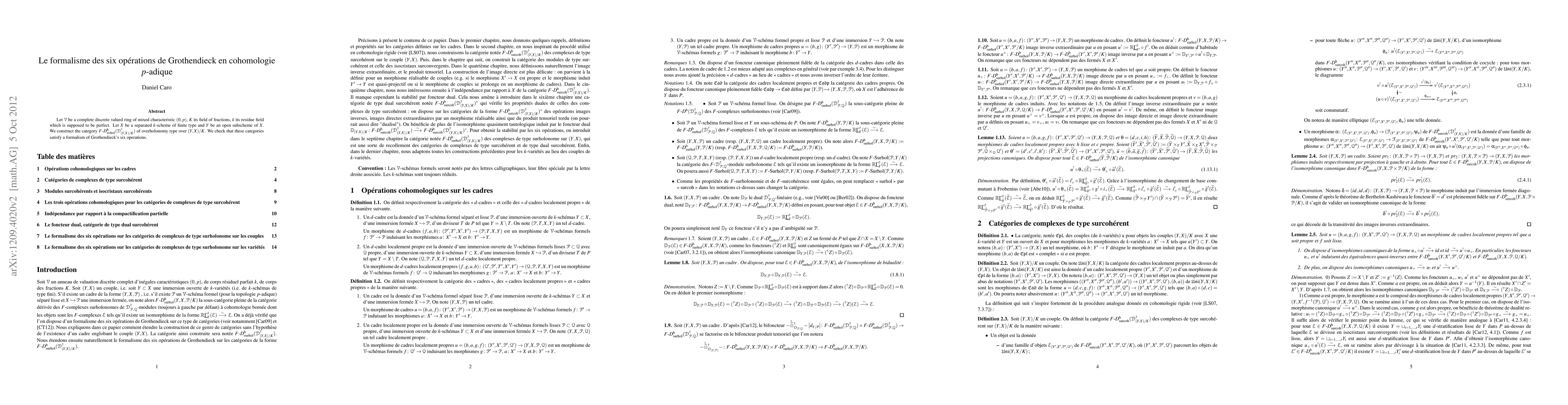 Let $\mathcal{V}$ be a complete discrete valued ring of mixed characteristic $(0,p)$, $K$ its field of fractions, $k$ its residue field which is supposed to be perfect. Let $X$ be a separated $k$-scheme of finite type and $Y$ be an open subscheme of $X$. We construct the category $F\text{-}D ^\mathrm{b}_\mathrm{ovhol} (\mathcal{D} ^\dag_{(Y,X)/K})$ of overholonomy type over $(Y,X)/K$. We check that these categories satisfy a formalism of Grothendieck's six operations.