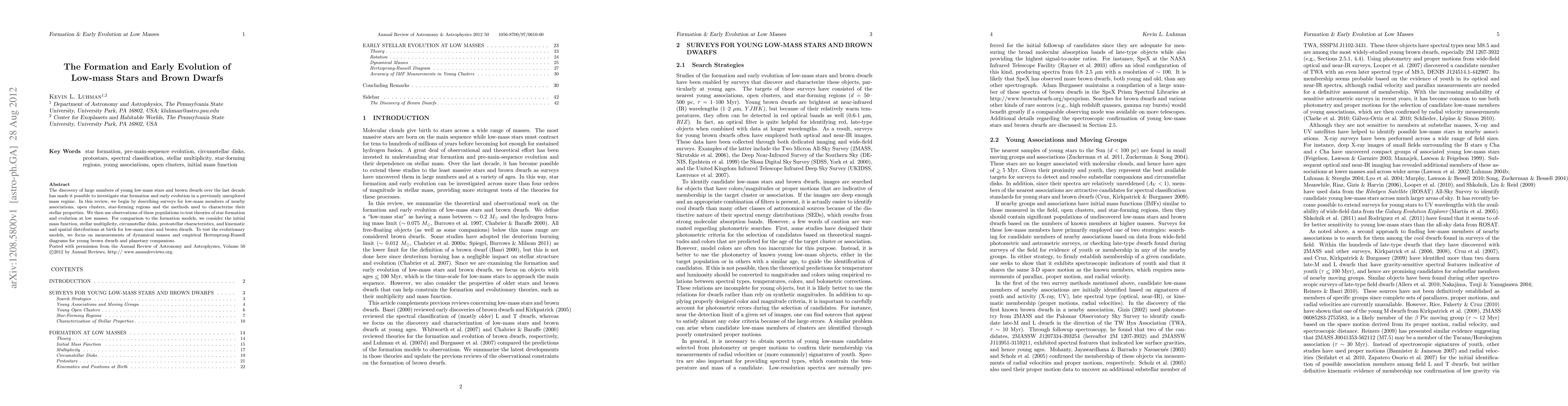 This paper reviews the discovery and characterization of young low-mass stars and brown dwarfs, providing insights into their formation and early evolution. It examines observational data to test theoretical models of star formation and evolution in this mass regime.