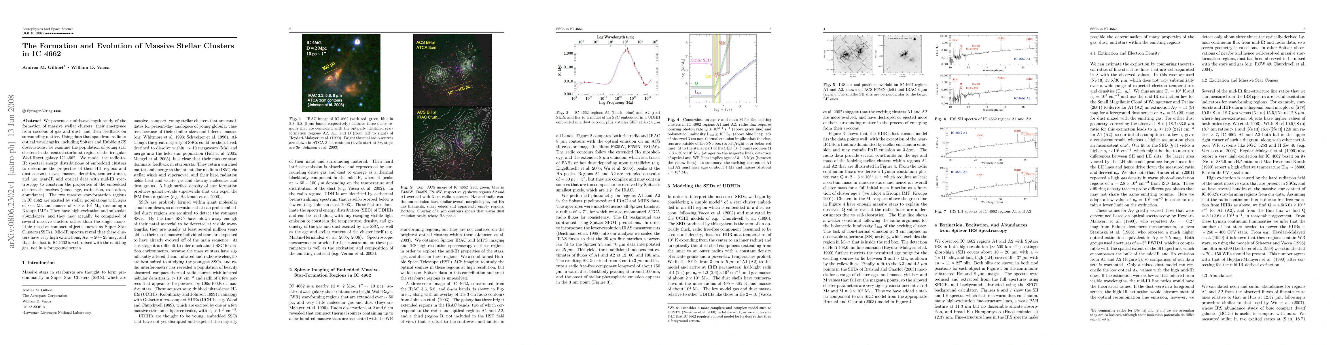 We present a multiwavelength study of the formation of massive stellar clusters, their emergence from cocoons of gas and dust, and their feedback on surrounding matter. Using data that span from radio to optical wavelengths, including Spitzer and Hubble ACS observations, we examine the population of young star clusters in the central starburst region of the irregular Wolf-Rayet galaxy IC 4662. We model the radio-to-IR spectral energy distributions of embedded clusters to determine the properties of their HII regions and dust cocoons (sizes, masses, densities, temperatures), and use near-IR and optical data with mid-IR spectroscopy to constrain the properties of the embedded clusters themselves (mass, age, extinction, excitation, abundance). The two massive star-formation regions in IC 4662 are excited by stellar populations with ages of ~ 4 million years and masses of ~ 3 x 10^5 M_sun (assuming a Kroupa IMF). They have high excitation and sub-solar abundances, and they may actually be comprised of several massive clusters rather than the single monolithic massive compact objects known as Super Star Clusters (SSCs). Mid-IR spectra reveal that these clusters have very high extinctions, A_V ~ 20-25 mag, and that the dust in IC 4662 is well-mixed with the emitting gas, not in a foreground screen.