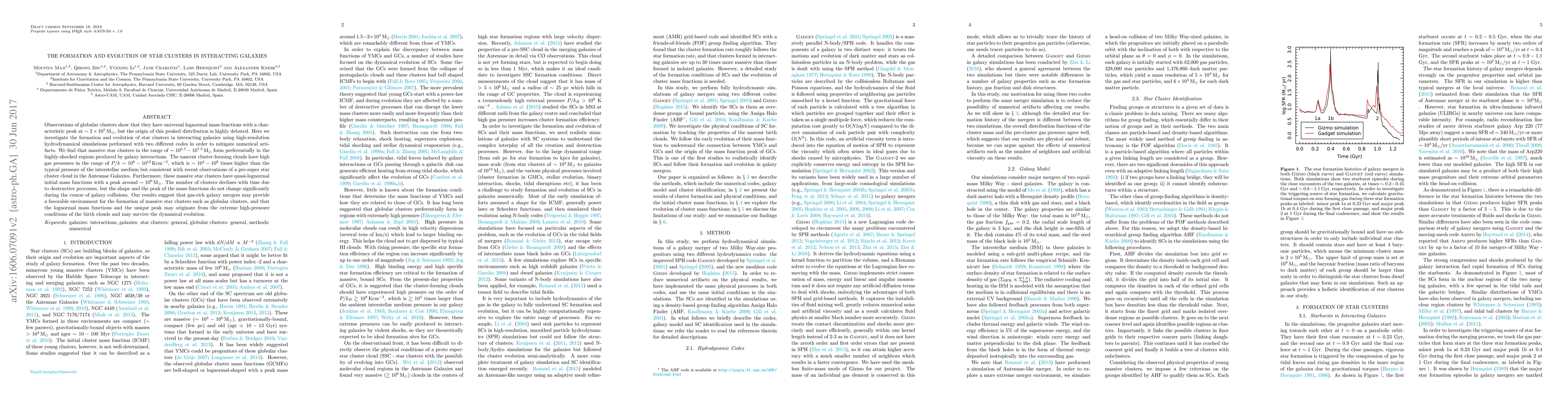High-resolution simulations show that massive star clusters form in highly-shocked regions during galaxy interactions, with peak masses around $10^6 ext{ M}_ ext{ aisebox{-0.5pt}{ ext{$ heta$}}}$, and lognormal mass functions persisting over time.