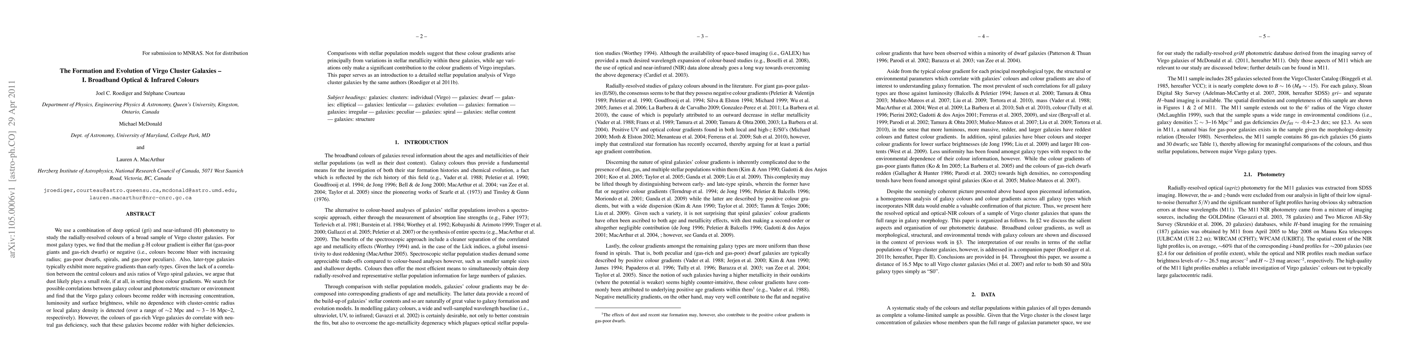 We use a combination of deep optical (gri) and near-infrared (H) photometry to study the radially-resolved colours of a broad sample of 300 Virgo cluster galaxies. For most galaxy types, we find that the median g-H colour gradient is either flat (gas-poor giants and gas-rich dwarfs) or negative (i.e., colours become bluer with increasing radius; gas-poor dwarfs, spirals, and gas-poor peculiars). Later-type galaxies typically exhibit more negative gradients than early-types. Given the lack of a correlation between the central colours and axis ratios of Virgo spiral galaxies, we argue that dust likely plays a small role, if at all, in setting those colour gradients. We search for possible correlations between galaxy colour and photometric structure or environment and find that the Virgo galaxy colours become redder with increasing concentration, luminosity and surface brightness, while no dependence with cluster-centric radius or local galaxy density is detected (over a range of ~2 Mpc and ~3-16 Mpc^-2, respectively). However, the colours of gas-rich Virgo galaxies do correlate with neutral gas deficiency, such that these galaxies become redder with higher deficiencies. Comparisons with stellar population models suggest that these colour gradients arise principally from variations in stellar metallicity within these galaxies, while age variations only make a significant contribution to the colour gradients of Virgo irregulars. A detailed stellar population analysis based on this material is presented in Roediger et al (2011b; arXiv:1011.3511).