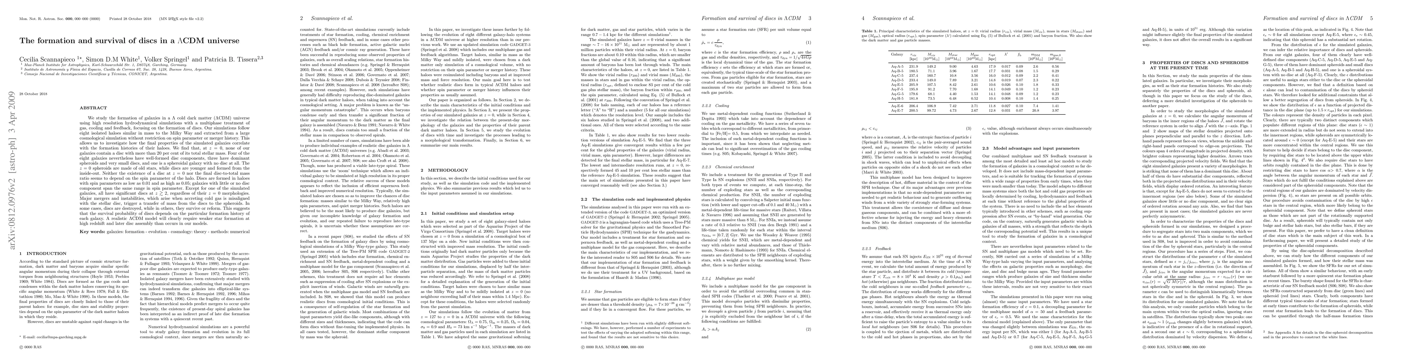 This study uses high-resolution hydrodynamical simulations to explore galaxy disc formation in a Lambda-CDM Universe, finding that while discs form early, their survival at z=0 depends on complex merger and accretion histories. Discs are present in galaxies with varying spin parameters, but major mergers can destroy or alter them.