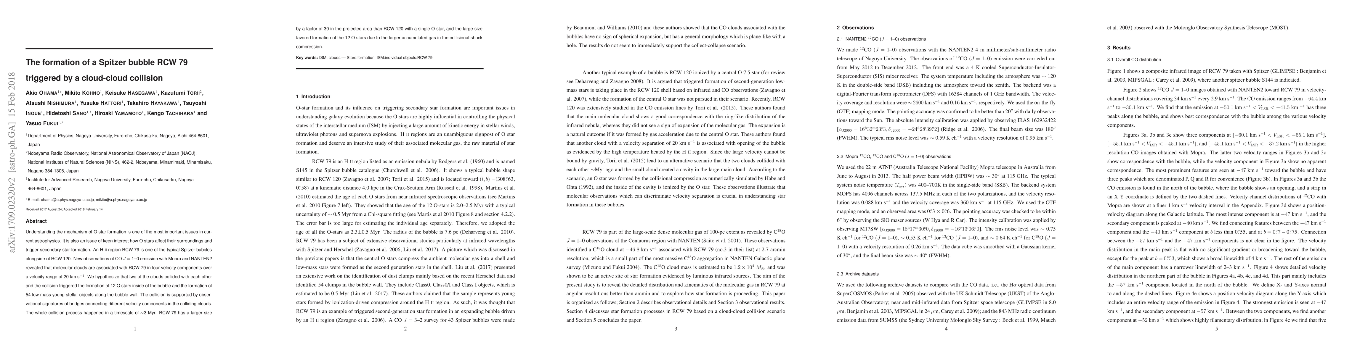 This paper investigates the formation of the Spitzer bubble RCW79, suggesting that a cloud-cloud collision triggered the formation of 12 O stars and 54 low-mass young stellar objects. The collision, occurring over a timescale of about 1 Myr, is evidenced by observational signatures of molecular cloud bridges.