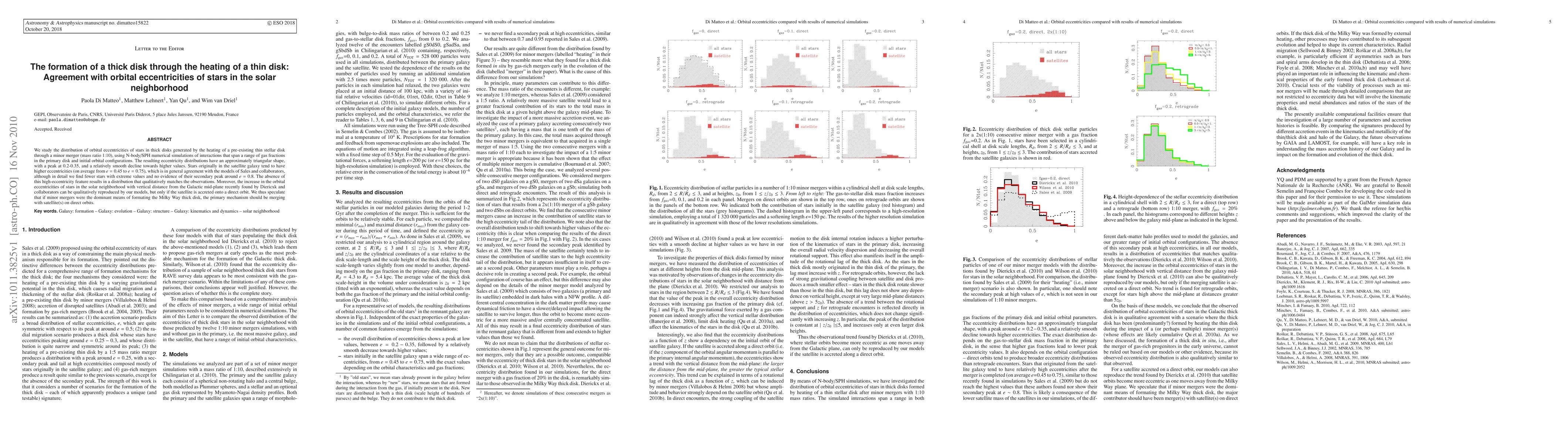 We study the distribution of orbital eccentricities of stars in thick disks generated by the heating of a pre-existing thin stellar disk through a minor merger (mass ratio 1:10), using N-body/SPH numerical simulations of interactions that span a range of gas fractions in the primary disk and initial orbital configurations. The resulting eccentricity distributions have an approximately triangular shape, with a peak at 0.2-0.35, and a relatively smooth decline towards higher values. Stars originally in the satellite galaxy tend to have higher eccentricities (on average from e = 0.45 to e = 0.75), which is in general agreement with the models of Sales and collaborators, although in detail we find fewer stars with extreme values and no evidence of their secondary peak around e = 0.8. The absence of this high-eccentricity feature results in a distribution that qualitatively matches the observations. Moreover, the increase in the orbital eccentricities of stars in the solar neighborhood with vertical distance from the Galactic mid-plane recently found by Diericxk and collaborators can be qualitatively reproduced by our models, but only if the satellite is accreted onto a direct orbit. We thus speculate that if minor mergers were the dominant means of formating the Milky Way thick disk, the primary mechanism should be merging with satellite(s) on direct orbits.