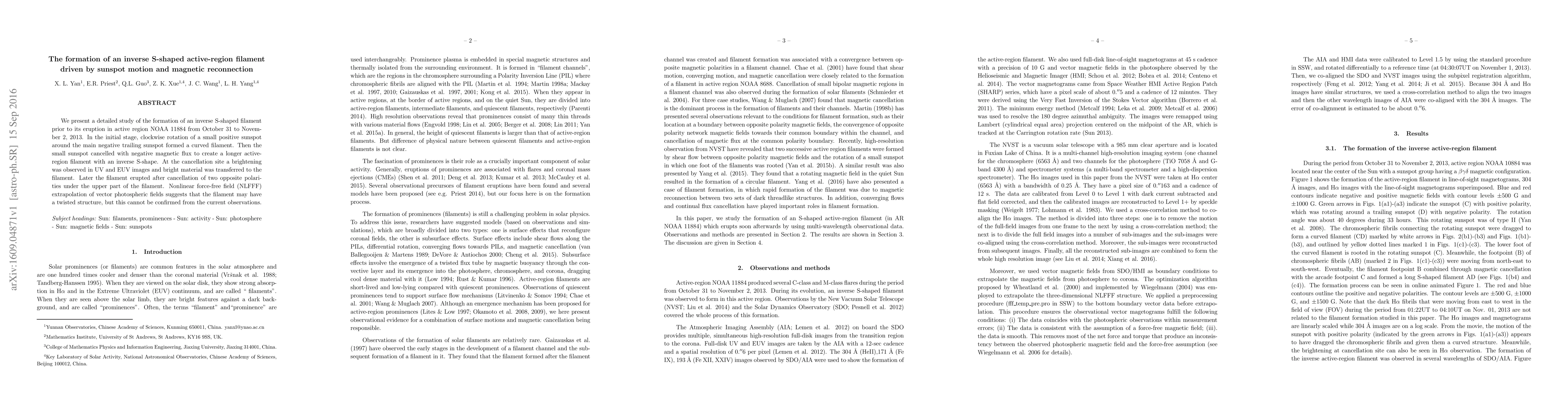 This study investigates the formation of an inverse S-shaped filament in active region NOAA 11884, driven by sunspot rotation and magnetic reconnection. The filament erupted after the cancellation of opposite polarities, suggesting a potential twisted structure inferred from NLFFF extrapolations.