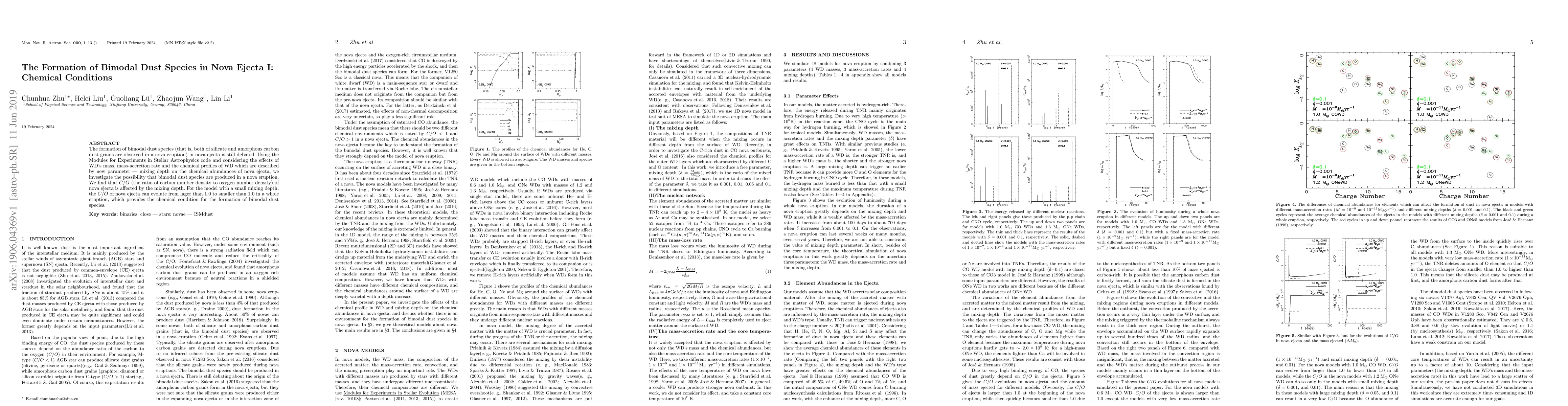 The formation of bimodal dust species (that is, both of silicate and amorphous carbon dust grains are observed in a nova eruption) in nova ejecta is still debated. Using the Modules for Experiments in Stellar Astrophysics code and considering the effects of WD's mass, mass-accretion rate and the chemical profiles of WD which are described by new parameter --- mixing depth on the chemical abundances of nova ejecta, we investigate the possibility that bimodal dust species are produced in a nova eruption. We find that $C/O$ (the ratio of carbon number density to oxygen number density) of nova ejecta is affected by the mixing depth. For the model with a small mixing depth, the $C/O$ of nova ejecta can evolute from lager than 1.0 to smaller than 1.0 in a whole eruption, which provides the chemical condition for the formation of bimodal dust species.