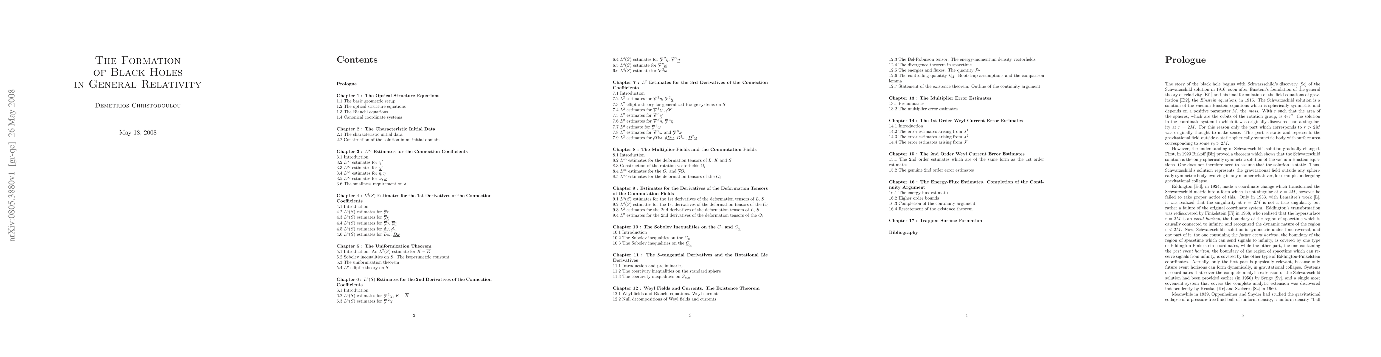 The subject of this work is the formation of black holes in pure general relativity, by the focusing of incoming gravitational waves. The theorems established in this monograph constitute the first foray into the long time dynamics of general relativity in the large, that is, when the initial data are no longer confined to a suitably small neighborhood of Minkowskian data. The theorems are general, no symmetry conditions on the initial data being imposed.