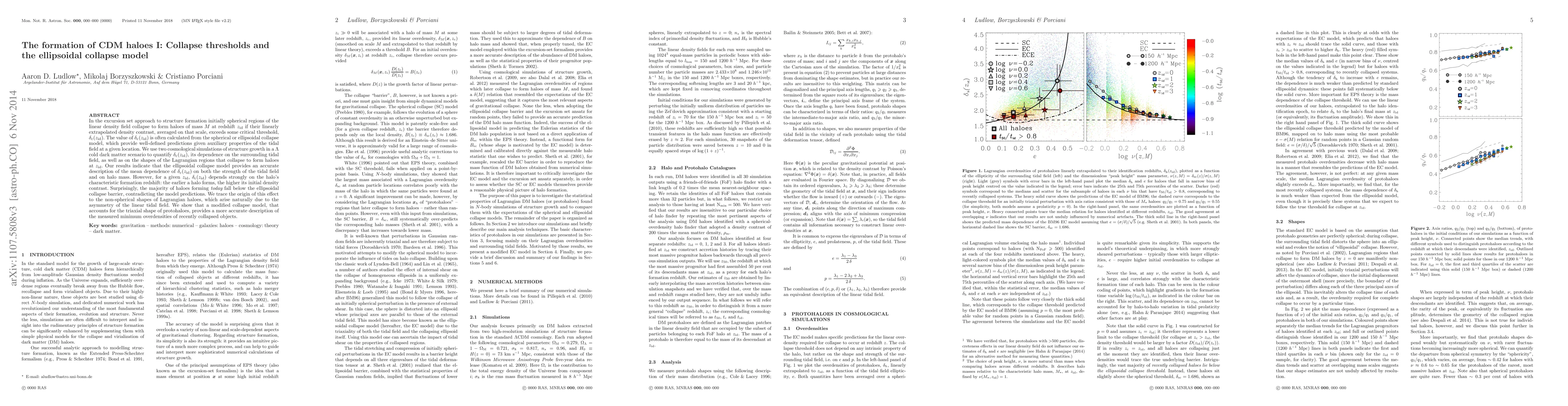 This paper investigates the formation of cold dark matter (CDM) haloes using cosmological simulations, finding that the ellipsoidal collapse model accurately predicts the mean density contrast threshold for halo formation. However, it reveals that most haloes forming today do not meet this threshold, due to their non-spherical shapes resulting from asymmetric tidal fields, suggesting a need for a modified collapse model that considers triaxial protohaloes.