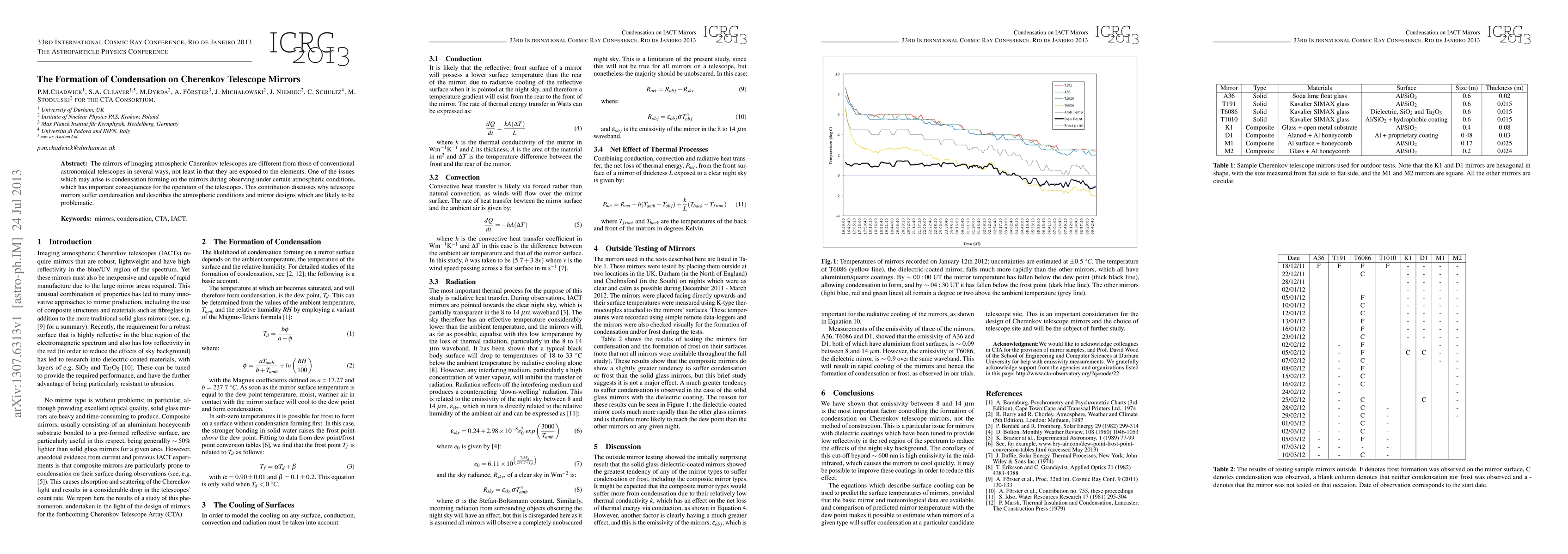 This paper investigates the formation of condensation on the mirrors of imaging atmospheric Cherenkov telescopes, which are exposed to the elements and can suffer from condensation under specific atmospheric conditions, affecting telescope operation. It identifies problematic atmospheric conditions and mirror designs that exacerbate this issue.