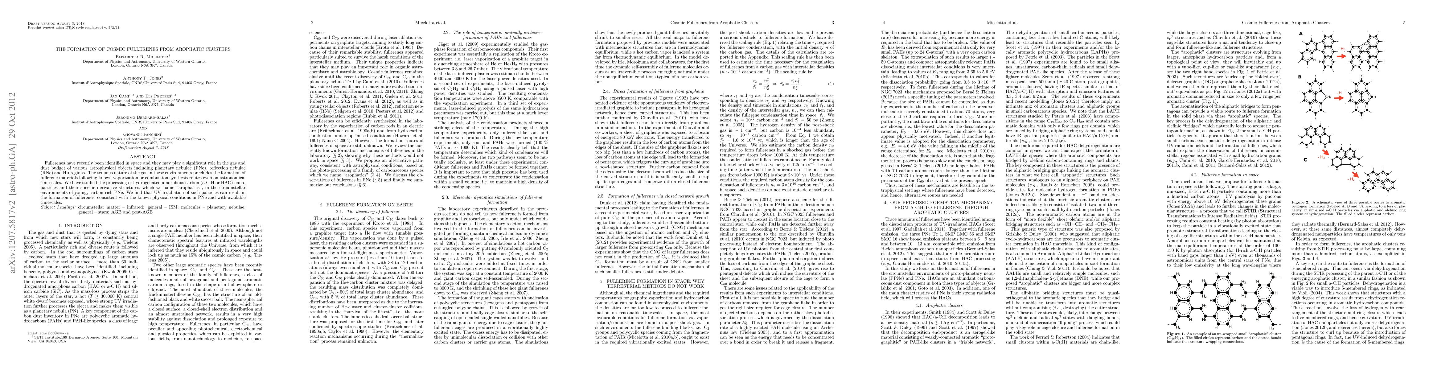 This paper investigates the formation of cosmic fullerenes from hydrogenated amorphous carbon nanoparticles called "arophatics" in the circumstellar environments of young, carbon-rich planetary nebulae. The study concludes that UV-irradiation can facilitate the formation of fullerenes under the specific physical conditions found in these nebulae.