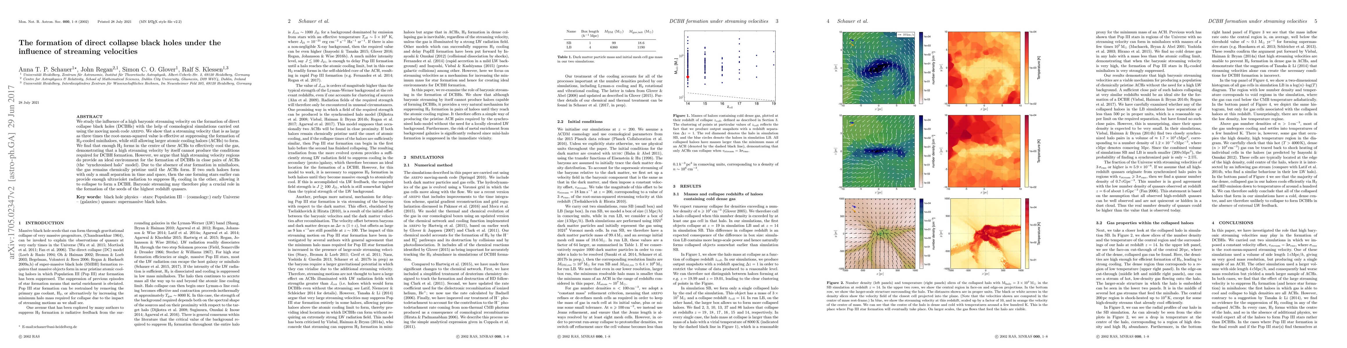 We study the influence of a high baryonic streaming velocity on the formation of direct collapse black holes (DCBHs) with the help of cosmological simulations carried out using the moving mesh code {\sc arepo}. We show that a streaming velocity that is as large as three times the root-mean-squared value is effective at suppressing the formation of H$_{2}$-cooled minihaloes, while still allowing larger atomic cooling haloes (ACHs) to form. We find that enough H$_{2}$ forms in the centre of these ACHs to effectively cool the gas, demonstrating that a high streaming velocity by itself cannot produce the conditions required for DCBH formation. However, we argue that high streaming velocity regions do provide an ideal environment for the formation of DCBHs in close pairs of ACHs (the "synchronised halo" model). Due to the absence of star formation in minihaloes, the gas remains chemically pristine until the ACHs form. If two such haloes form with only a small separation in time and space, then the one forming stars earlier can provide enough ultraviolet radiation to suppress H$_{2}$ cooling in the other, allowing it to collapse to form a DCBH. Baryonic streaming may therefore play a crucial role in the formation of the seeds of the highest redshift quasars.